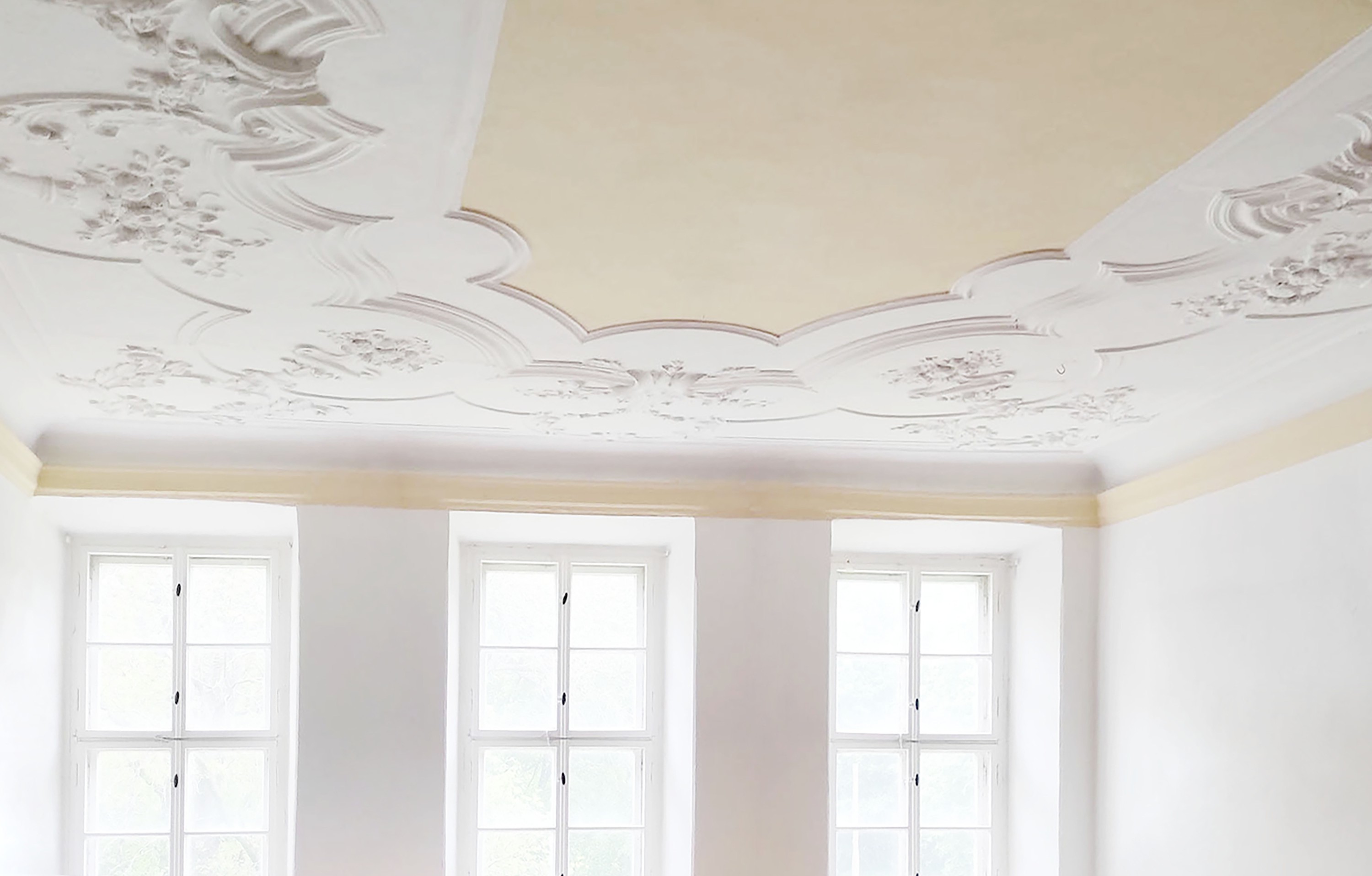 • dem Stil des Schlosses angepasste neue Holzfenster