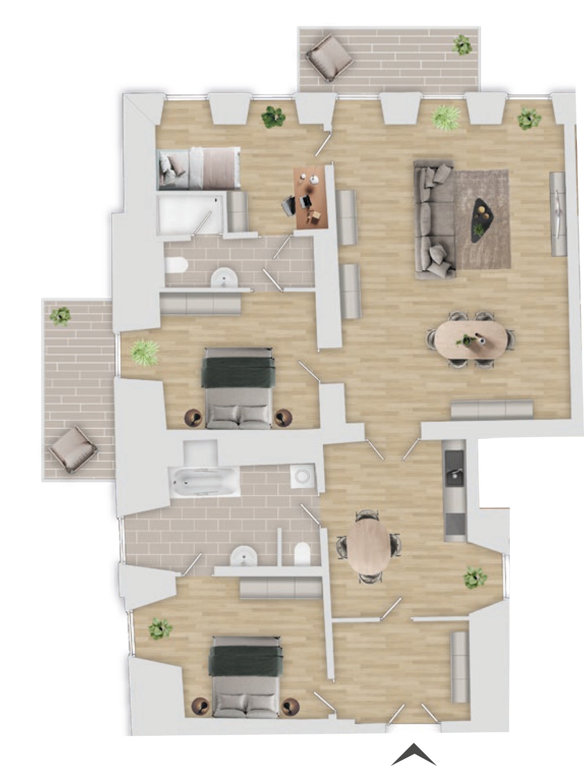 • alle Wohnungen erhalten neue Eichenparkettböden