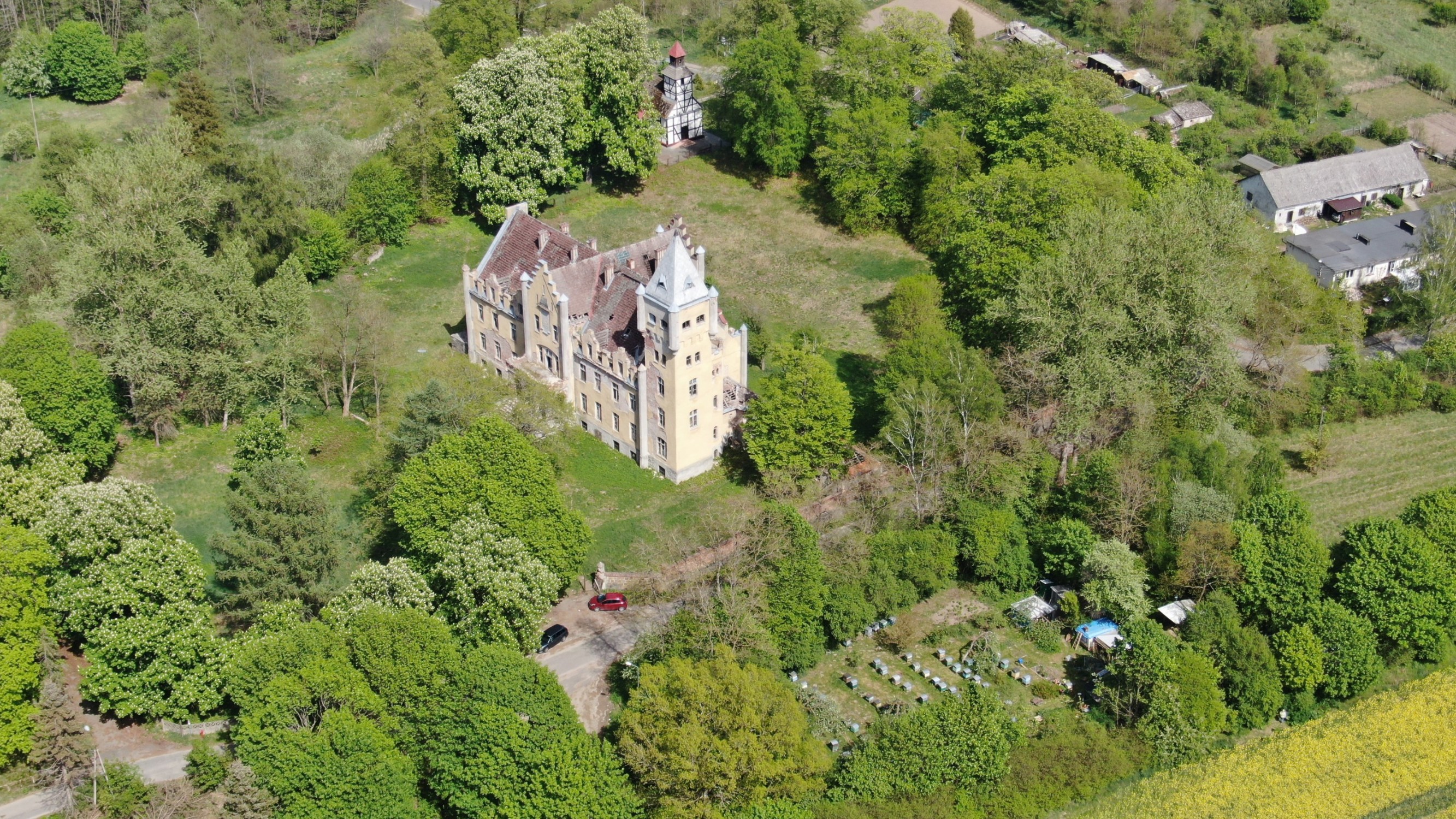 Cette propriété comprend un élégant palais néogothique construit au milieu du XIXᵉ siècle, d’une surface bâtie de 719 m², entouré d’un parc de 1,32 hectare. Classé monument historique, il a conservé tout son cachet architectural d’origine.