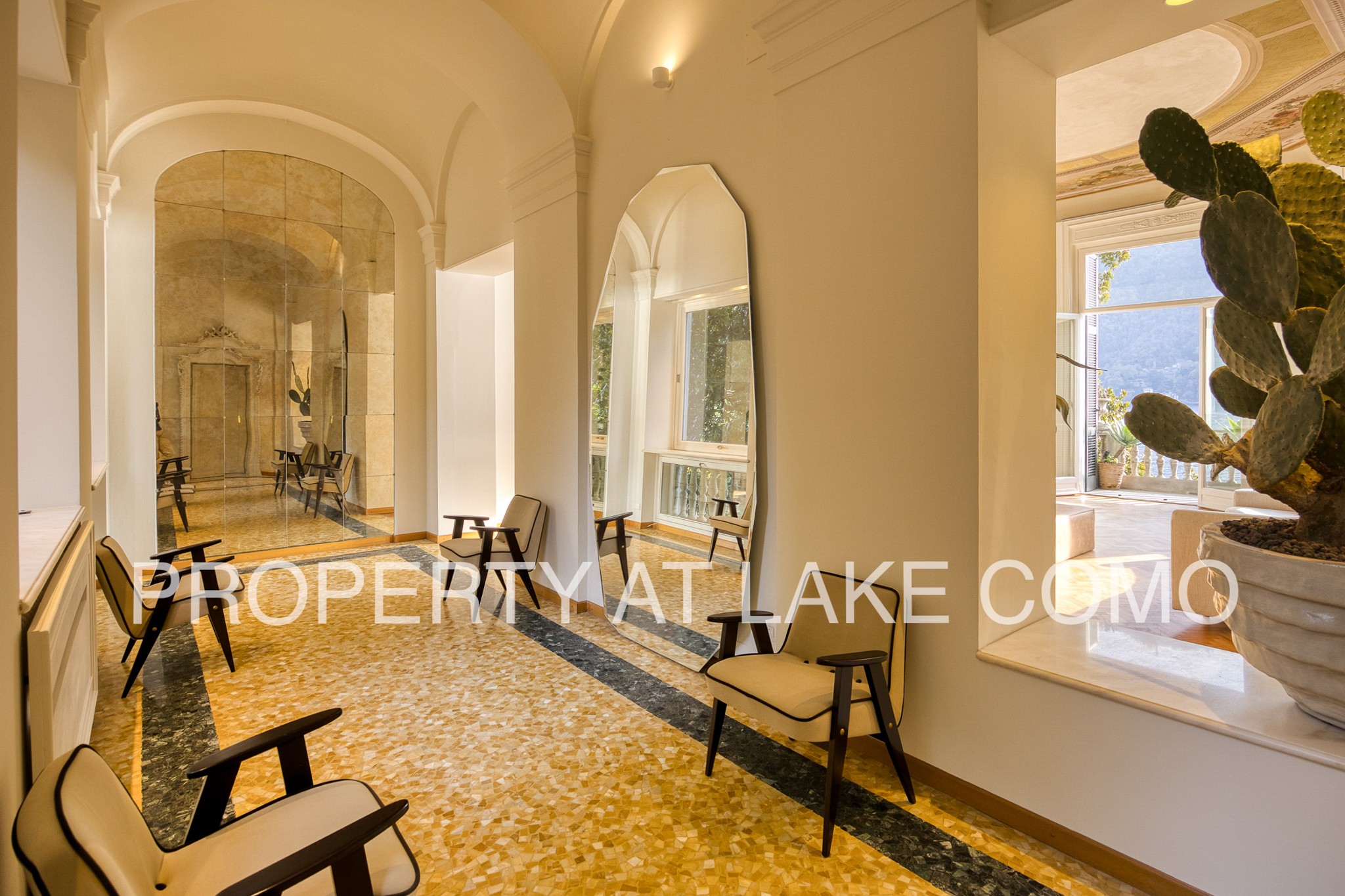 Un appartement situé au premier étage de la Villa Cantaluppi, entre Côme et Cernobbio, édifiée en 1851 par l’architecte Luigi Tatti, originaire de Côme. Après avoir appartenu à des aristocrates internationaux, elle fut ensuite la propriété de Ferdinando Bocconi, fondateur de l’université milanaise Bocconi. Elle est aujourd’hui divisée en quatre unités d’habitation.