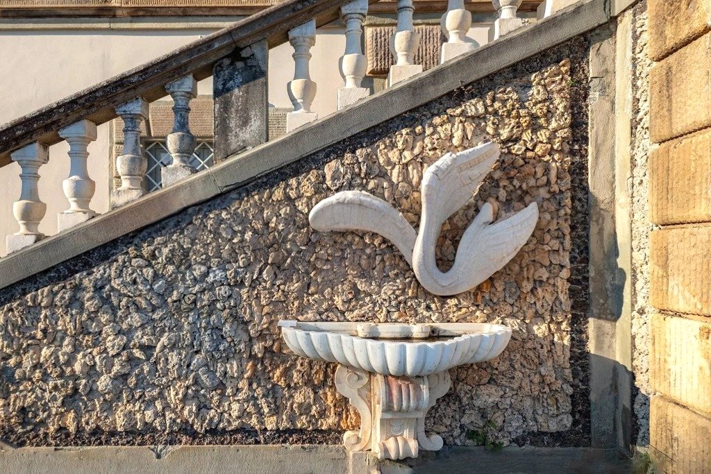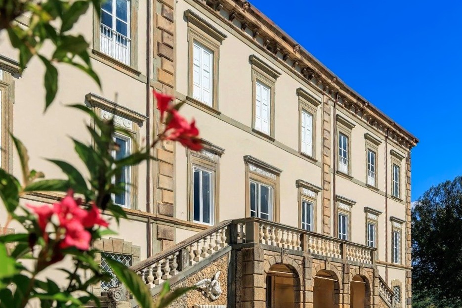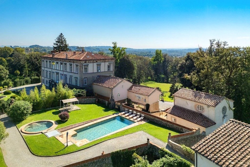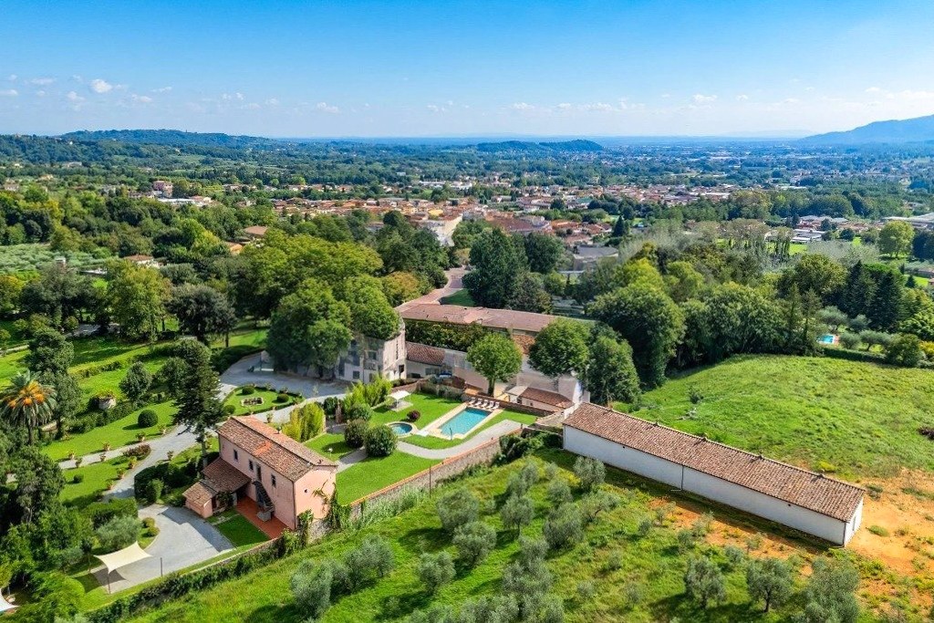 Au-dessus de Lucques, la Toscane devient plus calme et plus authentique. Les regards portent loin, le paysage est ordonné, et le silence n’est pas une mise en scène. La Villa Teodoro remonte au XVIᵉ siècle ; son développement le plus important eut lieu au XVIIIᵉ siècle sous la famille Orsucci. L’ensemble offre environ 3 200 m² de surface répartis sur plusieurs niveaux, au cœur d’un parc formel de plus de six hectares. Le jardin est composé avec soin : haies de buis, allées de gravier, statues en terre cuite et perspectives étudiées qui inscrivent naturellement la villa dans le paysage. À côté de la demeure, une ancienne limonaia, d’anciens lavoirs, une chapelle du XVIIIᵉ siècle et deux piscines panoramiques contribuent à l’aspect actuel du domaine.