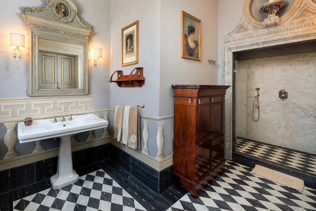 Au rez-de-chaussée, l’organisation historique des pièces a été entièrement conservée ; les espaces de service et les cuisines ont été restaurés dans le respect de leur état d’origine. Le piano nobile accueille une enfilade de pièces de réception, de salons ornés de fresques, de chambres et d’espaces privés, avec de hauts plafonds, des détails historiques et une lumière naturelle abondante.