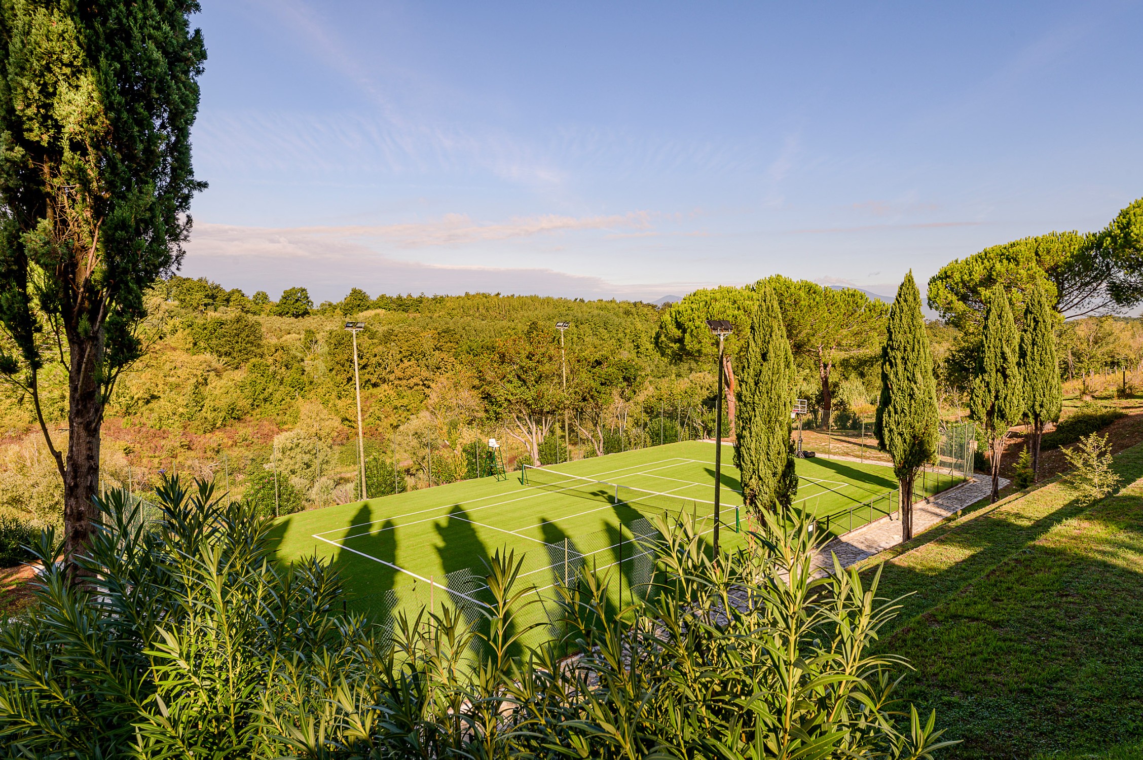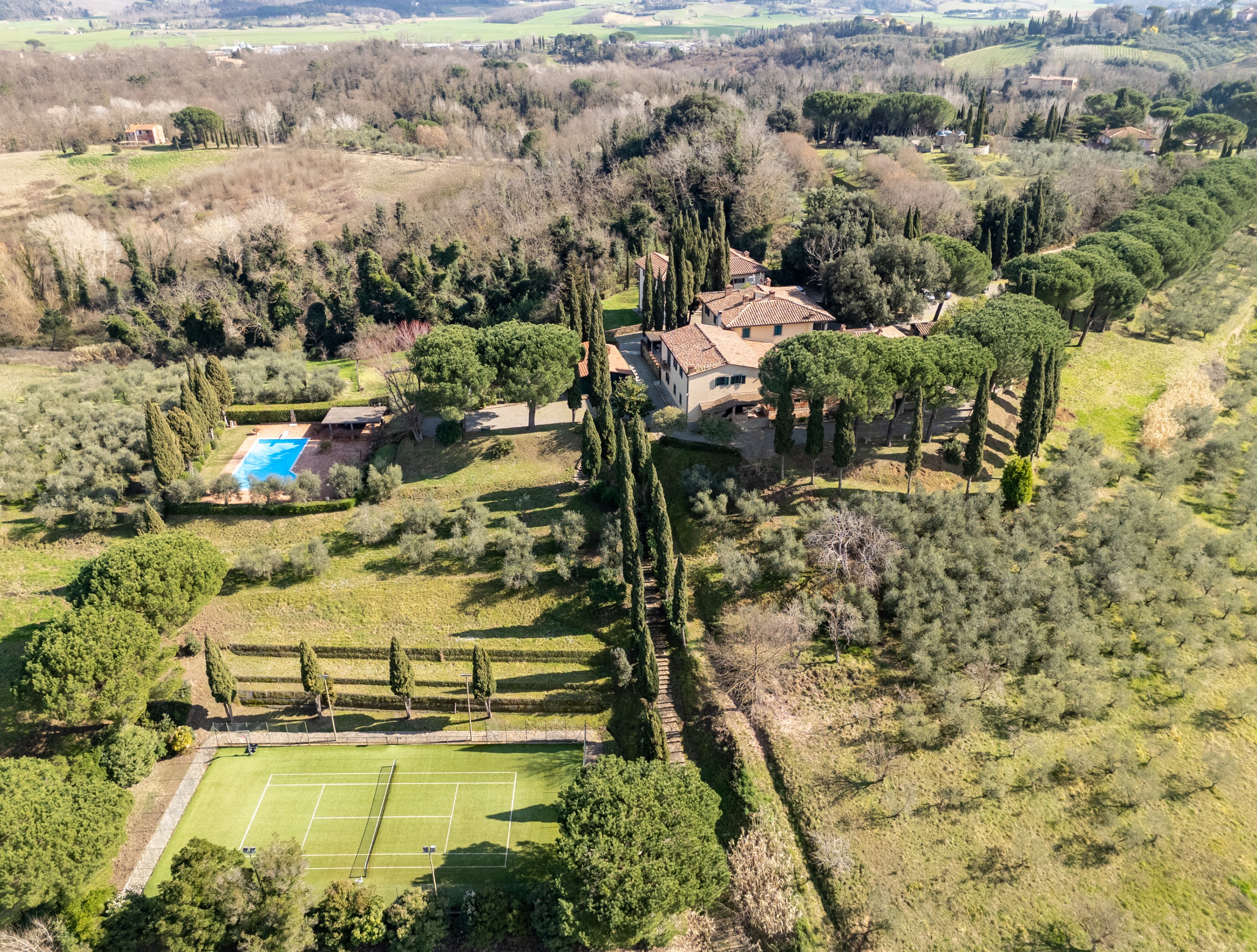 Immersa tra le dolci colline della provincia di Pisa, nel cuore della campagna toscana più autentica, questa straordinaria tenuta rappresenta un connubio perfetto tra storia, ospitalità e tradizione enogastronomica. La proprietà si estende su circa 30 ettari di terreno tra vigneti, uliveti e seminativi, offrendo un contesto di assoluta privacy e bellezza paesaggistica. Il complesso è composto da due strutture ricettive di grande fascino, perfettamente integrate nel paesaggio circostante, e dispone di ristorante con scuola di cucina, bar e sala degustazione vini, piscina panoramica, campo da tennis, ampie aree esterne con patii e zone relax, parcheggio privato e cantina vinicola. La tenuta produce circa 5.000 bottiglie annue di Syrah e Sangiovese, espressione autentica del terroir toscano. La struttura principale, risalente alla metà dell’Ottocento e sapientemente restaurata negli anni ’90, conserva intatto il fascino delle antiche dimore toscane. Originariamente residenza nobiliare, è stata nel tempo ampliata con spazi agricoli oggi trasformati in raffinati ambienti dedicati all’ospitalità e alla ristorazione. Gli interni accolgono gli ospiti in ambienti ricchi di carattere: antiche sale con soffitti a volta, camini in pietra, eleganti camere con bagno en suite e spazi conviviali che si aprono verso suggestive terrazze panoramiche e aree esterne attrezzate. Particolarmente affascinante è la sala colazioni, impreziosita da uno storico frantoio del 1893, testimonianza della tradizione agricola della proprietà. La struttura ricettiva dispone complessivamente di 29 camere con bagno, oltre a ulteriori ambienti di servizio, rendendo la tenuta perfettamente adatta ad un’attività di ospitalità di alto livello. La proprietà, storicamente conosciuta come “L’Ebreo” e citata nei registri del Vescovado di San Miniato, nel corso degli anni ha accolto personalità di fama internazionale, attratte dall’atmosfera esclusiva e dal fascino senza tempo di questo luogo. Una proprietà unica nel suo genere, ideale per chi desidera un prestigioso investimento nel settore dell’ospitalità o una residenza di rappresentanza immersa nella più autentica bellezza toscana.