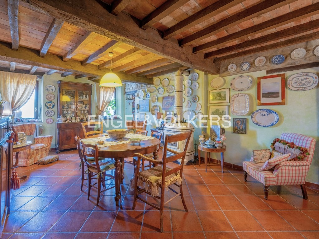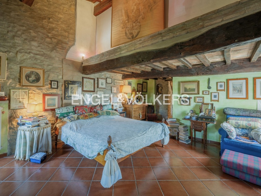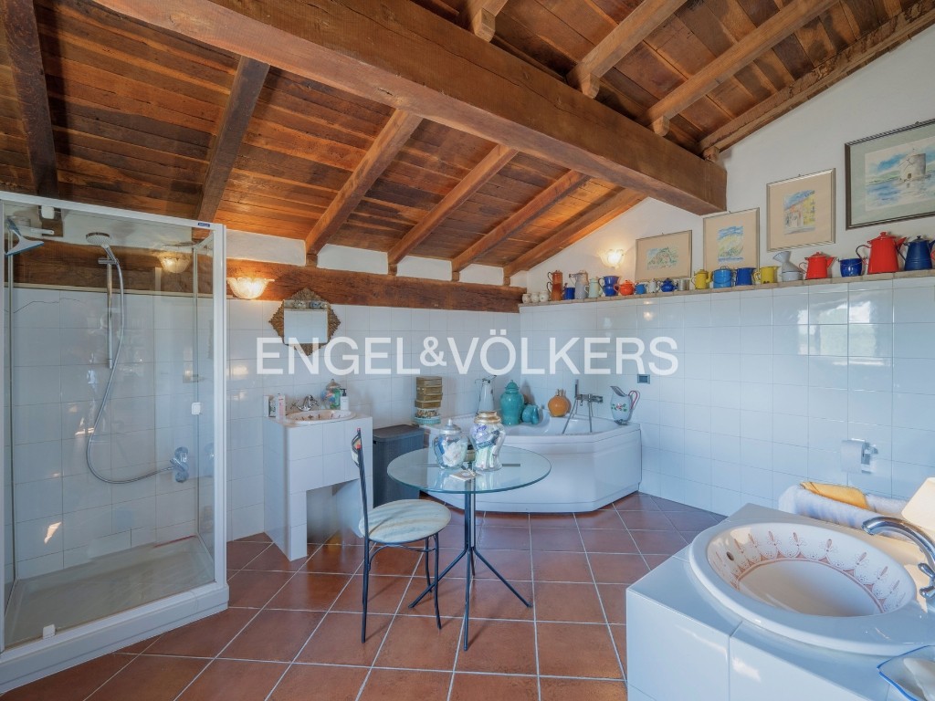 L’étage supérieur comprend la cuisine avec salle à manger séparée, deux chambres et une salle de bain. Le grenier abrite une autre chambre, deux pièces polyvalentes, une salle de bain et l’accès à la tour.