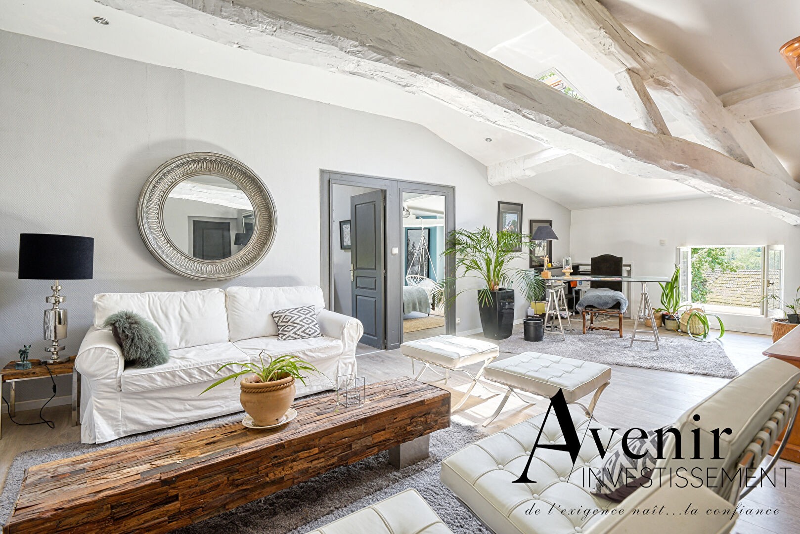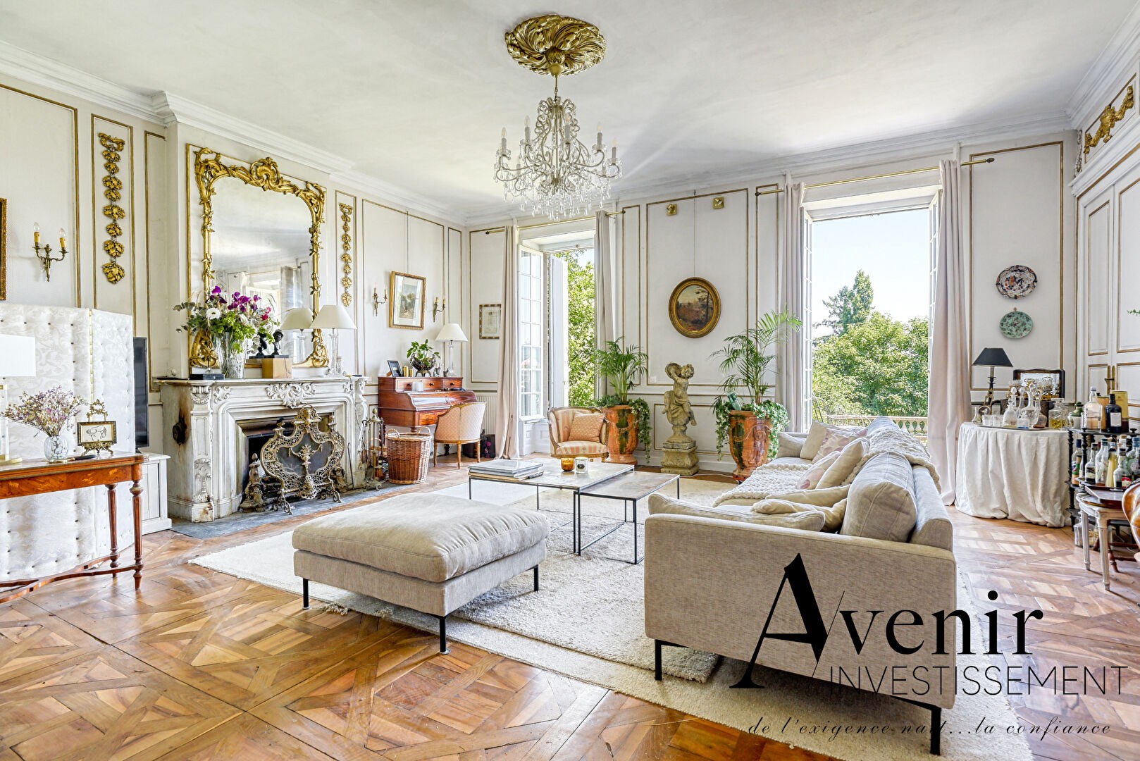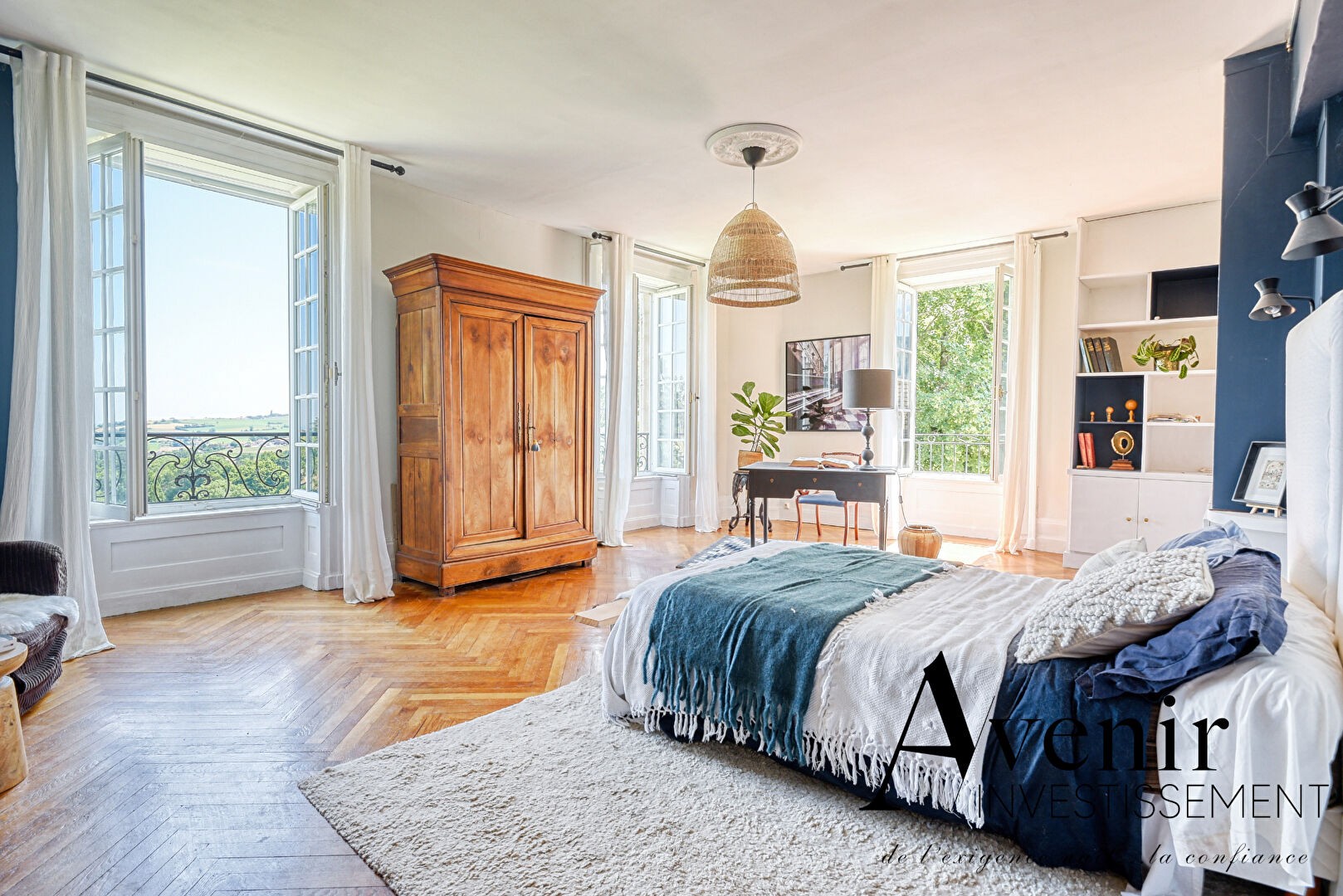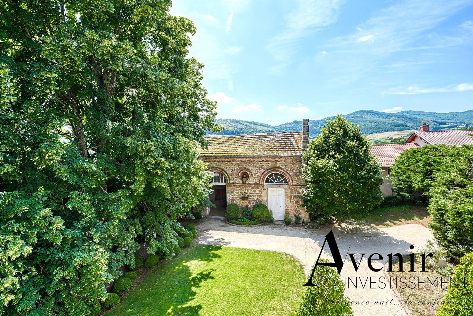 Propriété bourgeoise d’exception élevée sur trois niveaux de 180 m² chacun, sur une parcelle d’environ 8 000 m², avec une très belle vue dégagée sur les Monts du Lyonnais.