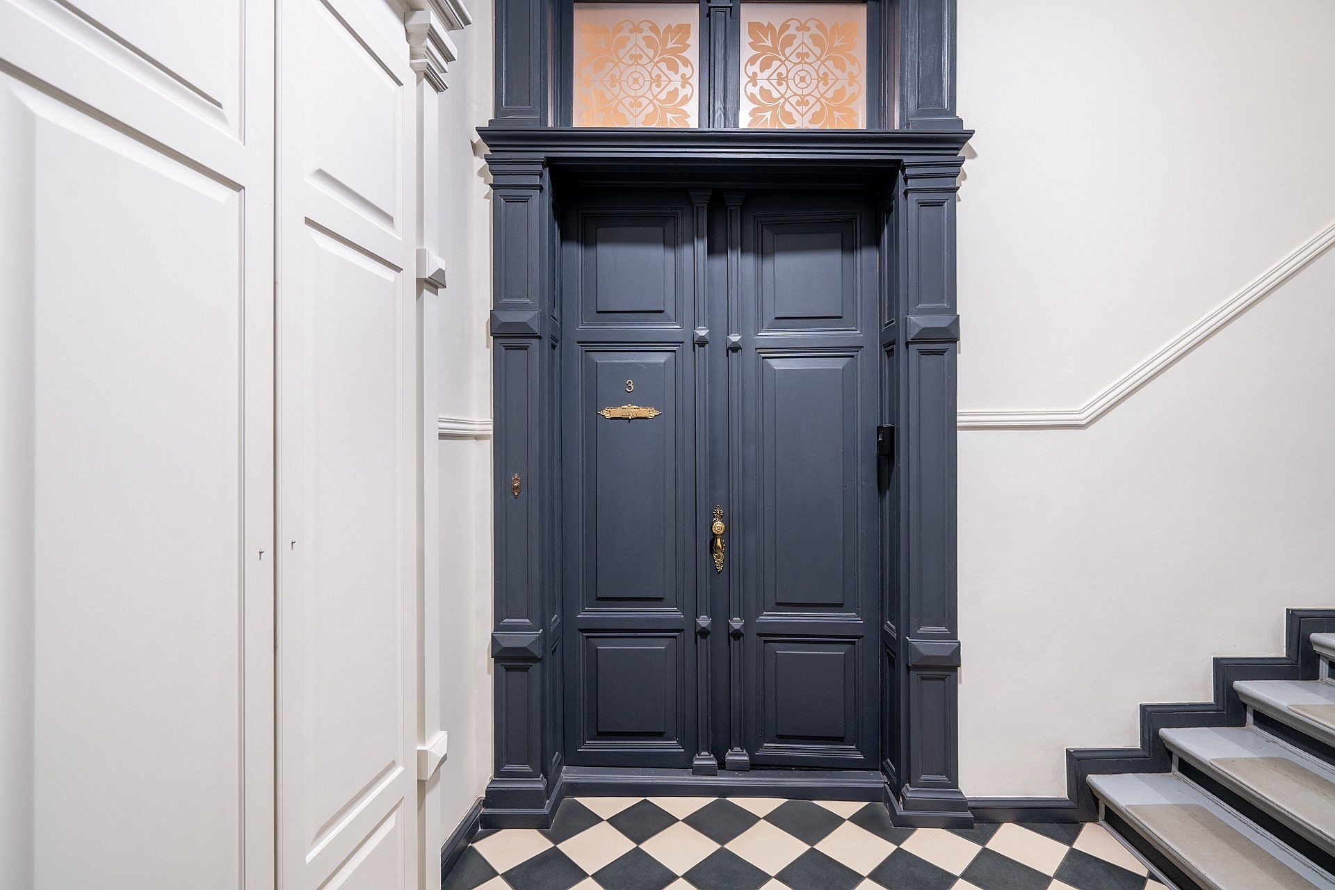 Appartement de 4 pièces au premier étage d’un immeuble historique situé rue Łąkowa, à Gdansk. Hauteur sous plafond : 3,25 m.