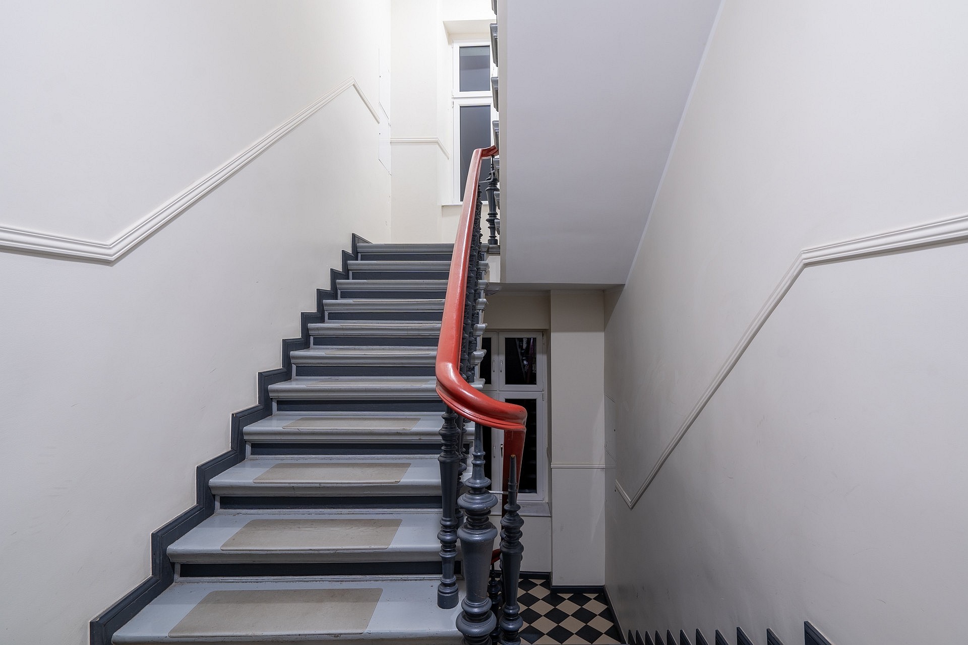 La cage d’escalier de l’immeuble a été récemment rénovée.