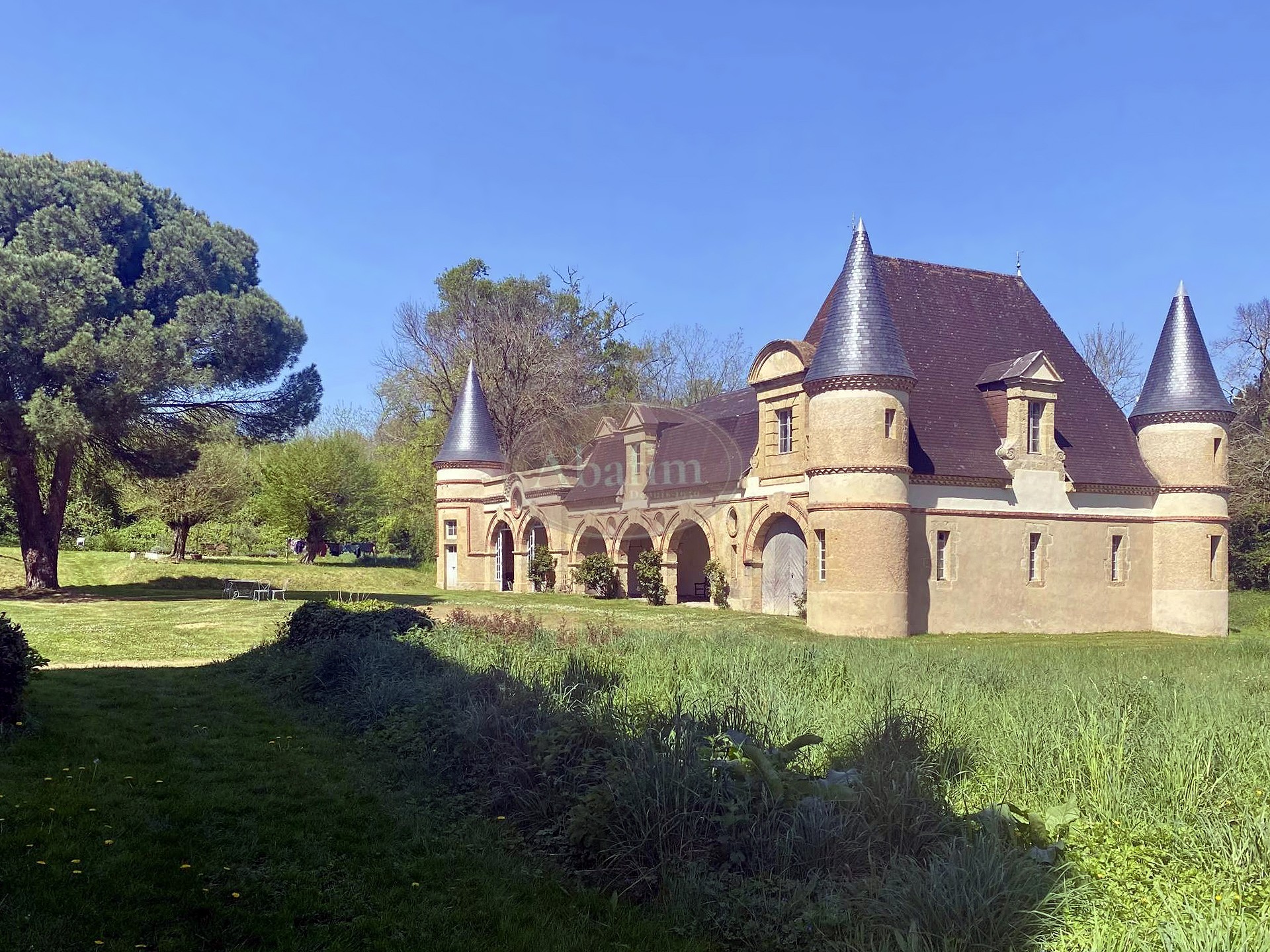 Inmitten der Hügellandschaft des Gers liegt ein als Monument Historique klassifiziertes Schlossensemble auf 7,6 Hektar. Das Anwesen vereint Hauptgebäude, neugotische Kapelle, Nebengebäude, Waldflächen und einen Teich.