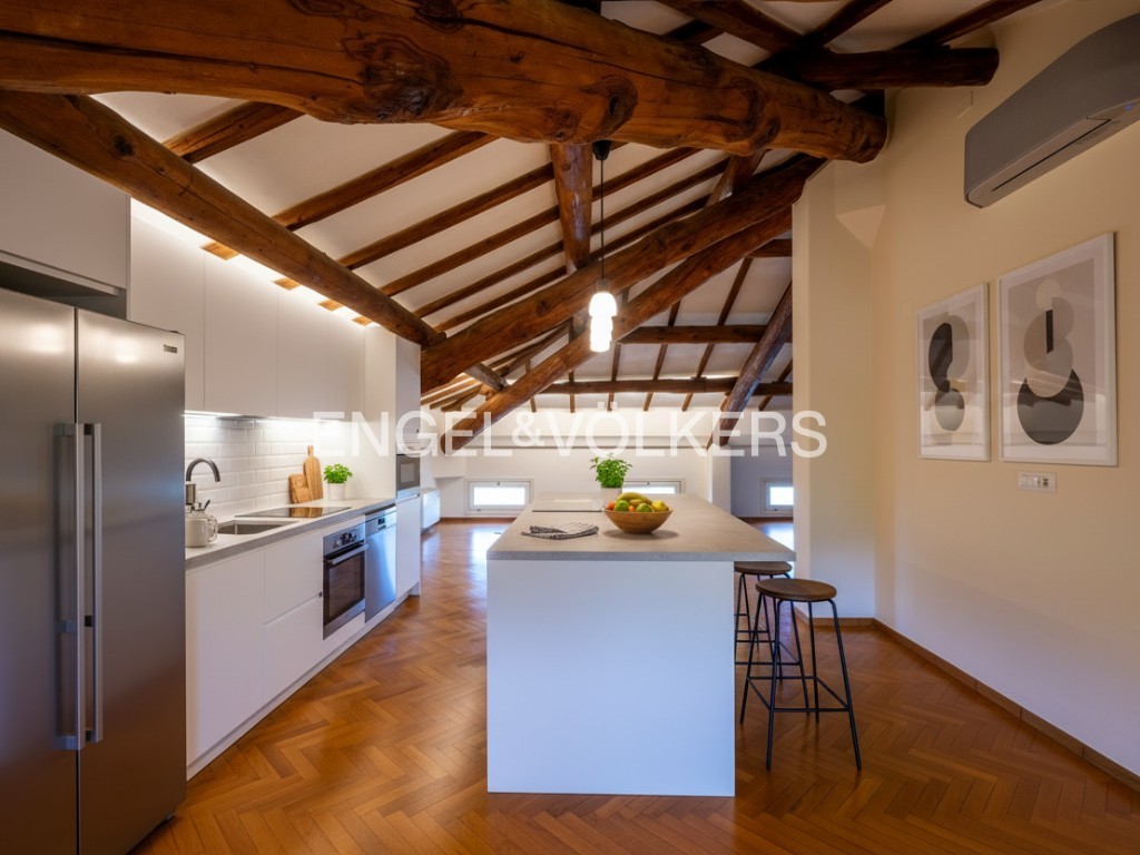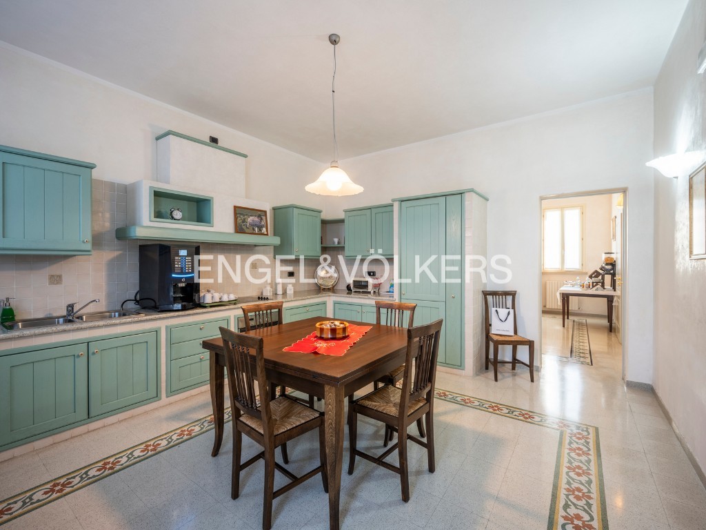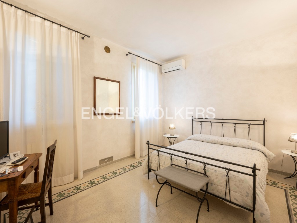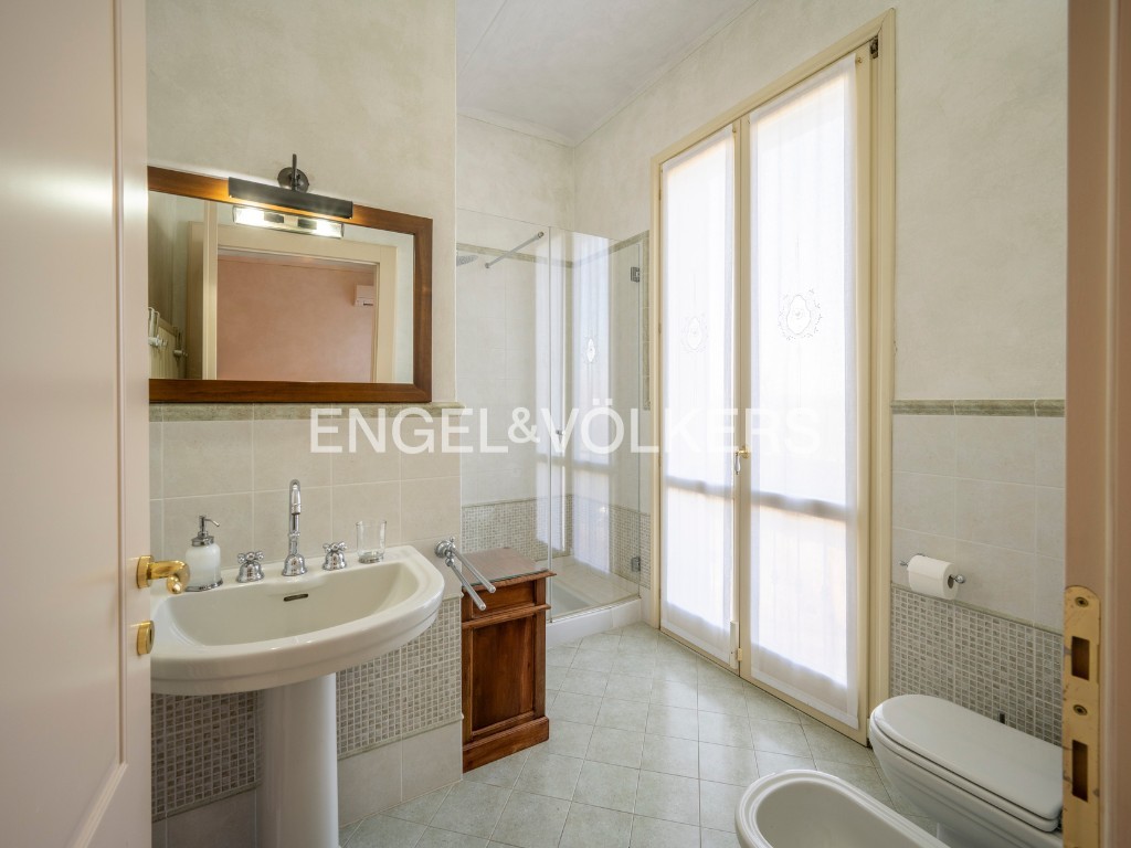 La demeure offre environ 400 m² de surface habitable, entourée d’un parc privé. Le rez-de-chaussée comprend un salon, une cuisine, un bureau et une salle de bains pour les invités. Le premier étage comprend trois chambres et deux salles de bains. Une unité indépendante au dernier étage complète la maison principale. La propriété comprend également un appartement sur deux niveaux, un grand garage avec buanderie et mezzanine, ainsi qu’une barchessa traditionnelle avec patio et deux garages supplémentaires. Le jardin offre quatre places de stationnement extérieures supplémentaires.