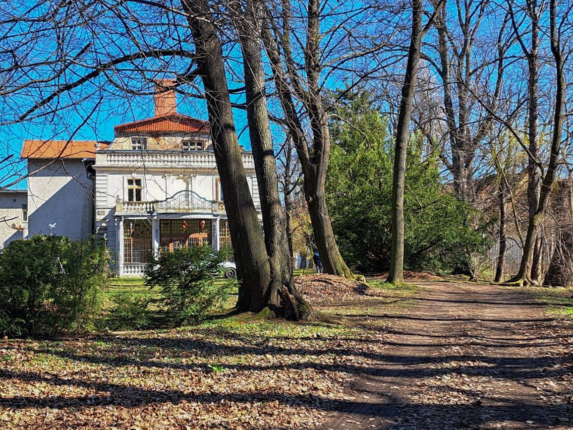 Le parc paysager classé a été aménagé dans les années 1870 et est inscrit depuis 1986 au registre polonais des monuments. Il comprend des ifs anciens un petit étang ornemental au sud-est ainsi qu’une clairière centrale. Au début du XXᵉ siècle le parc a été enrichi de conifères. Un fragment de mur en pierre du XVIIIᵉ siècle marque probablement la limite d’un ancien jardin potager ou verger.