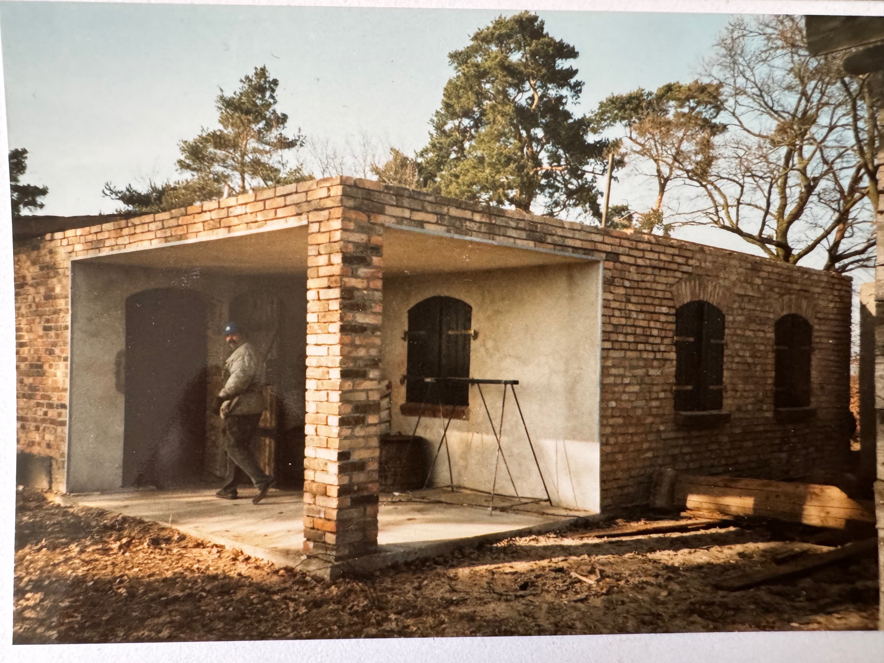 Cette maison rurale en briques pleines, de construction massive, est située à l’abri sur une petite île boisée au milieu des champs, avec vue sur le village-rue typique à proximité. La maison a été entièrement reconstruite selon des méthodes traditionnelles, en utilisant des briques historiques d’origine à haute cuisson et en respectant les plans initiaux de l’ancienne ferme. Les travaux ont été achevés en 1997.