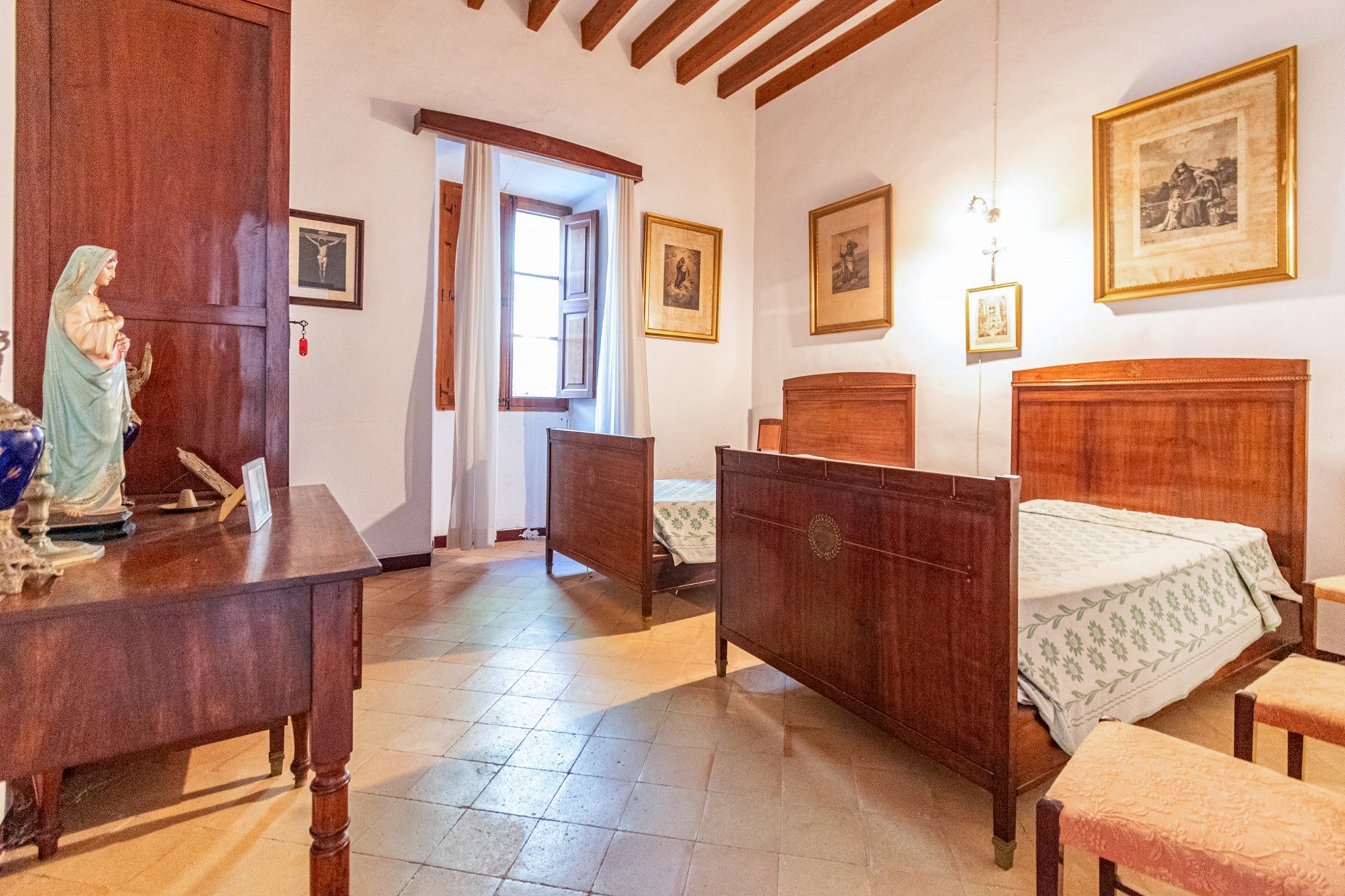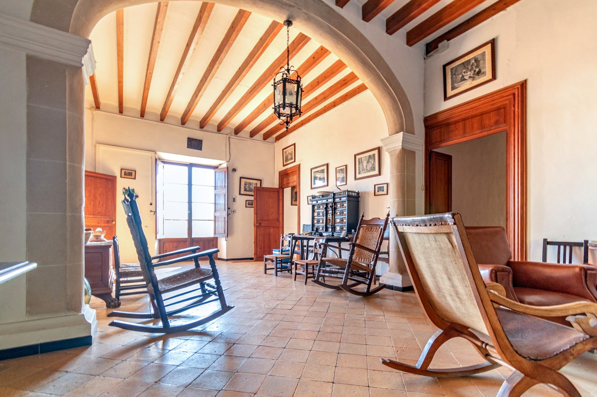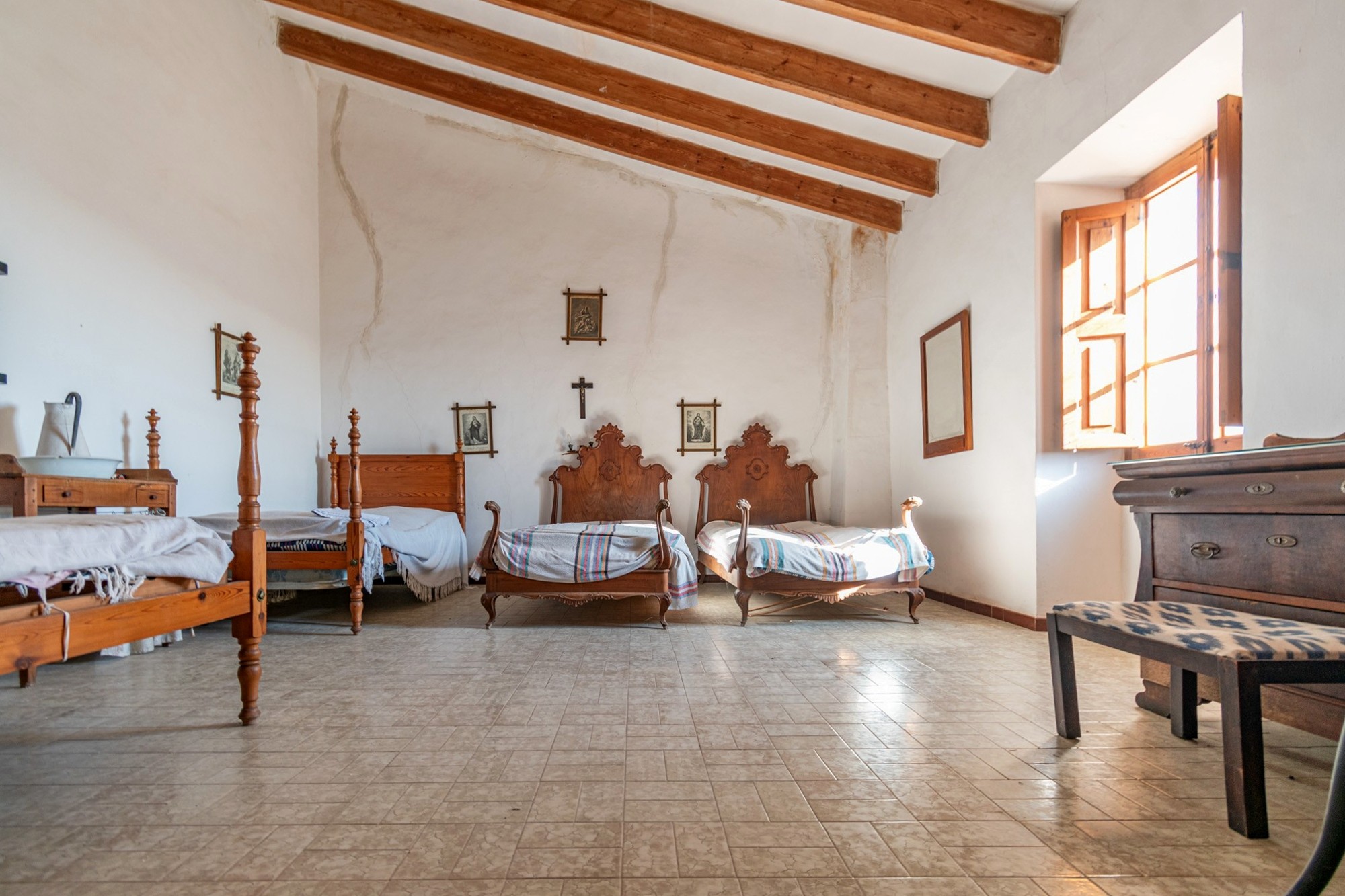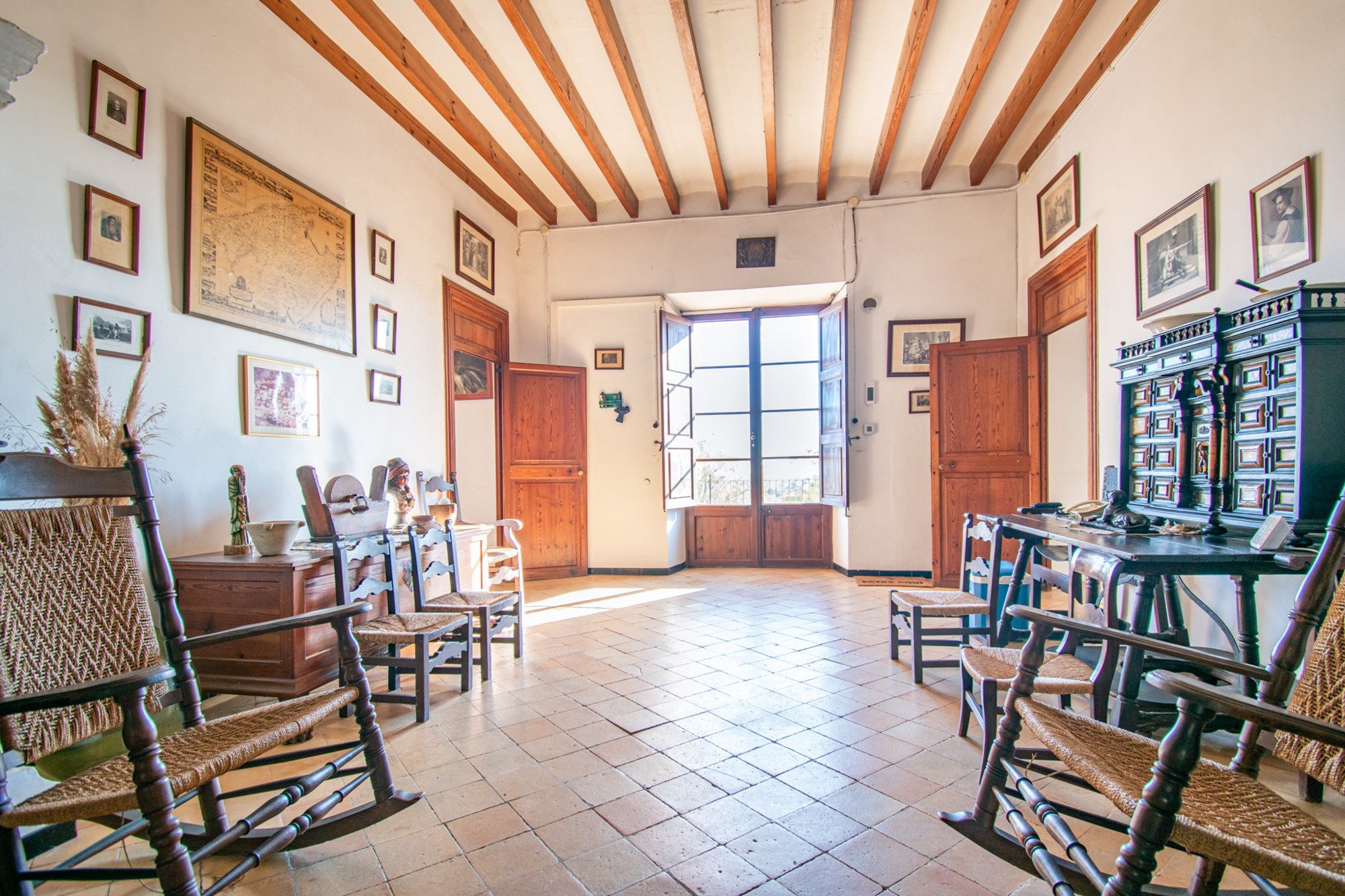 La casa señorial cuenta con aproximadamente 1.000 m² de superficie habitable distribuidos en tres niveles, con 15 dormitorios, 5 baños, 2 salones, biblioteca, capilla y diversos espacios de almacenamiento. El ático ofrece la posibilidad de crear habitaciones adicionales. En la entrada hay un amplio aparcamiento para más de 30 vehículos, incluyendo aproximadamente 100 m² que se pueden utilizar o reformar según necesidad. La propiedad también dispone de un garaje y varios anexos con uso múltiple.