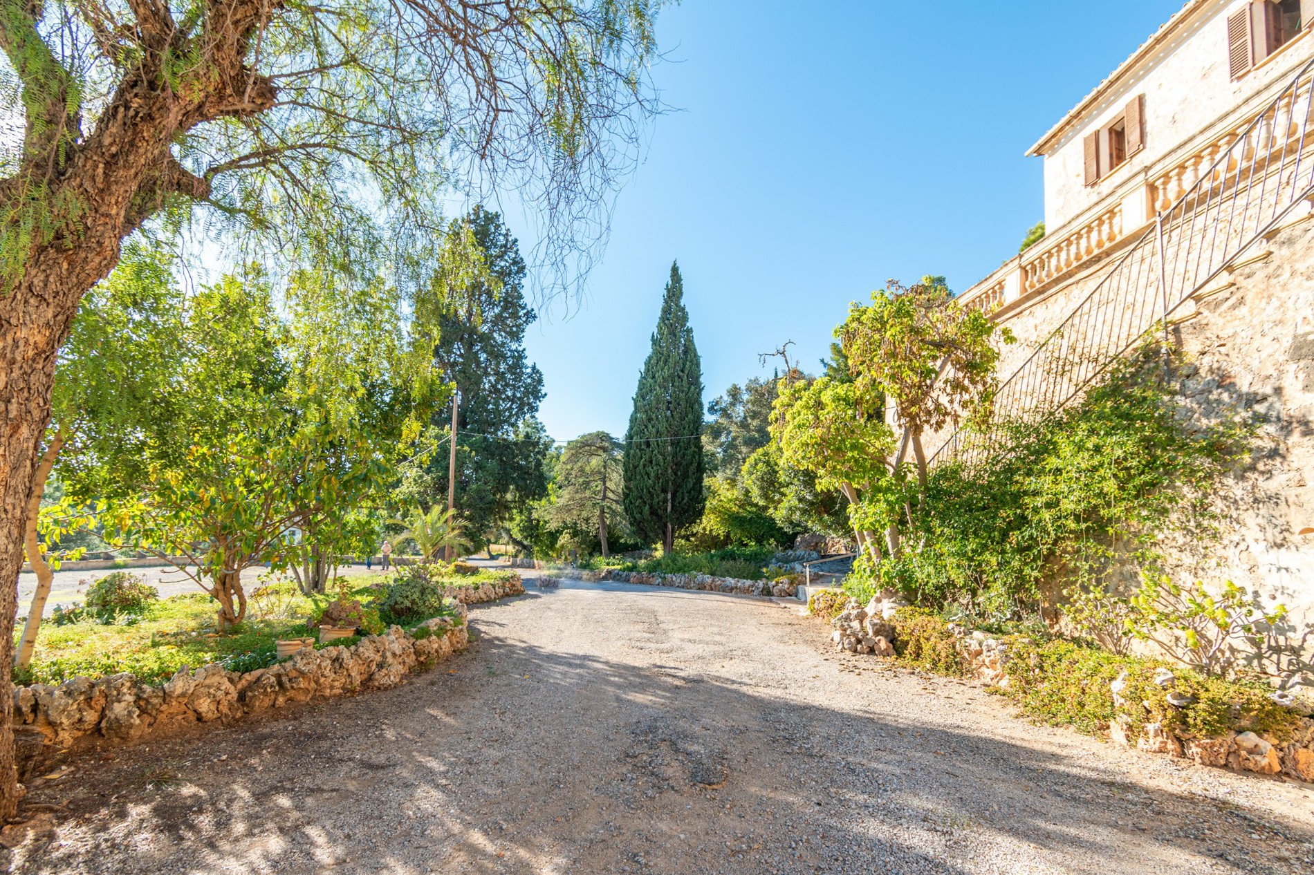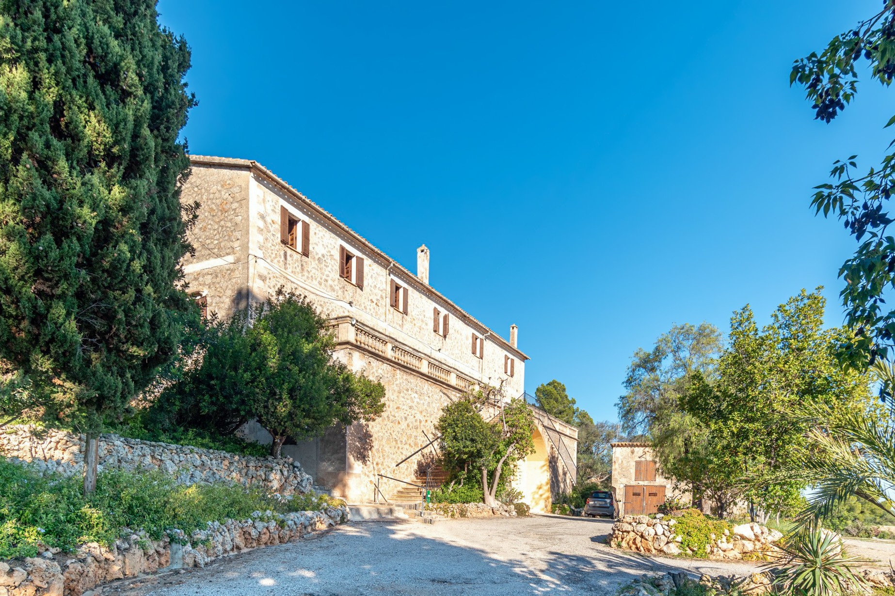 Situada a solo 20 minutos del centro de Palma, la propiedad también ofrece fácil acceso al aeropuerto de Sant Joan (20 minutos), a los prestigiosos campos de golf Son Vida, Son Muntaner y Son Quint (5 minutos) y a la playa de C'an Pere Antoni (solo 10 minutos). Los jardines circundantes se riegan mediante un sistema de colectores de agua de lluvia procedente de la montaña, y el agua potable se suministra mediante un depósito de recogida. La electricidad está conectada a la red pública, y la propiedad dispone de línea telefónica e internet.