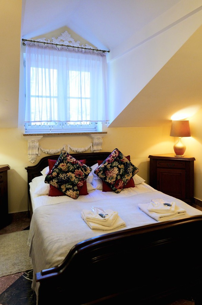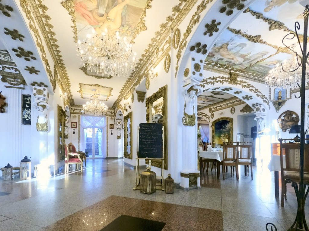 Pałac, przebudowany pod koniec XIX wieku i gruntownie odrestaurowany w latach 2002–2008, to trzykondygnacyjny obiekt o łącznej powierzchni ok. 1000 m², pełniący funkcję hotelu trzygwiazdkowego. Na wysokim parterze znajdują się sale konferencyjne i balowe, na poddaszu – stylowe pokoje hotelowe, w pełni wyposażone i umeblowane klasycznymi meblami. Pod pałacem znajdują się nieodkryte lochy, skrywające swoją tajemniczą historię…