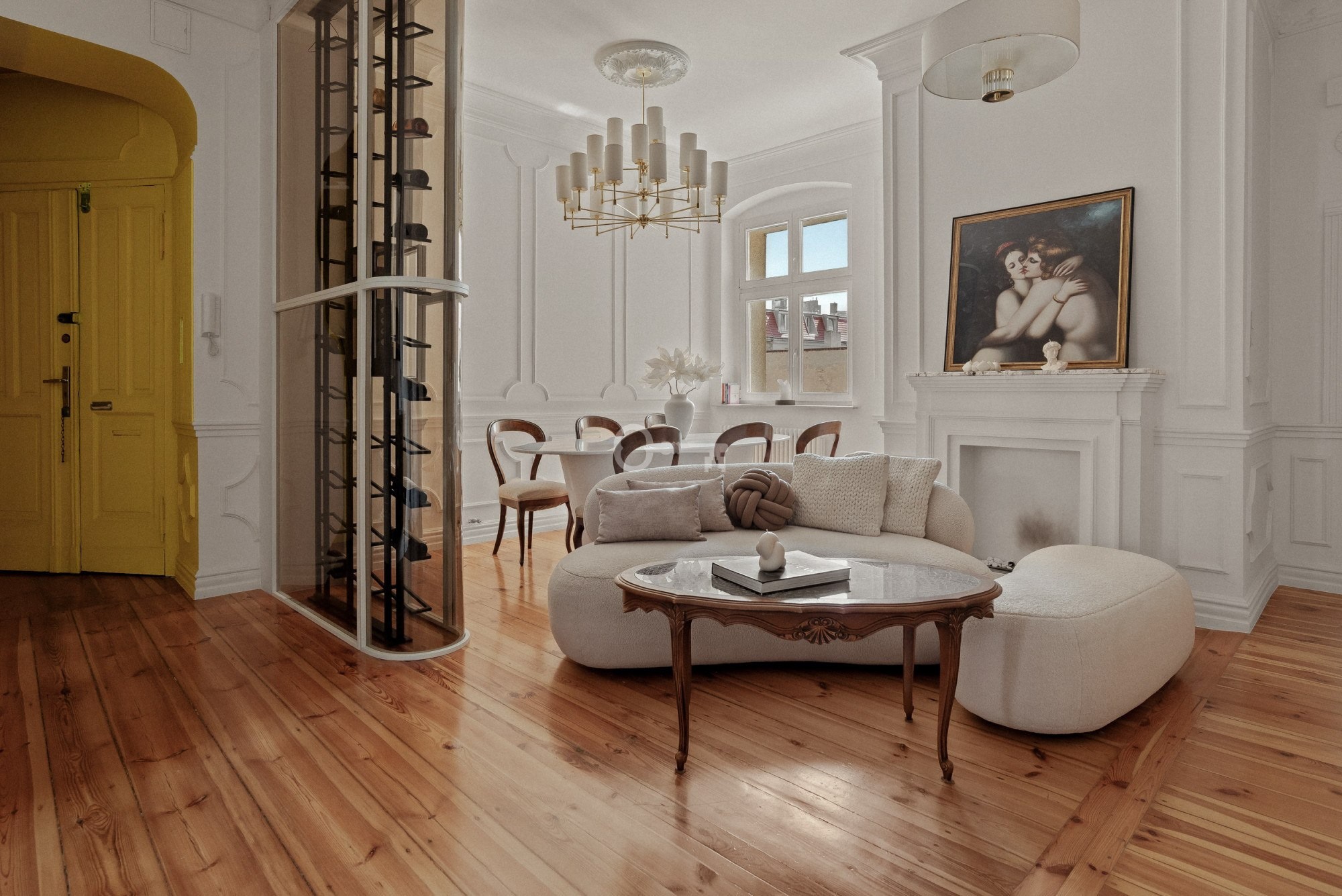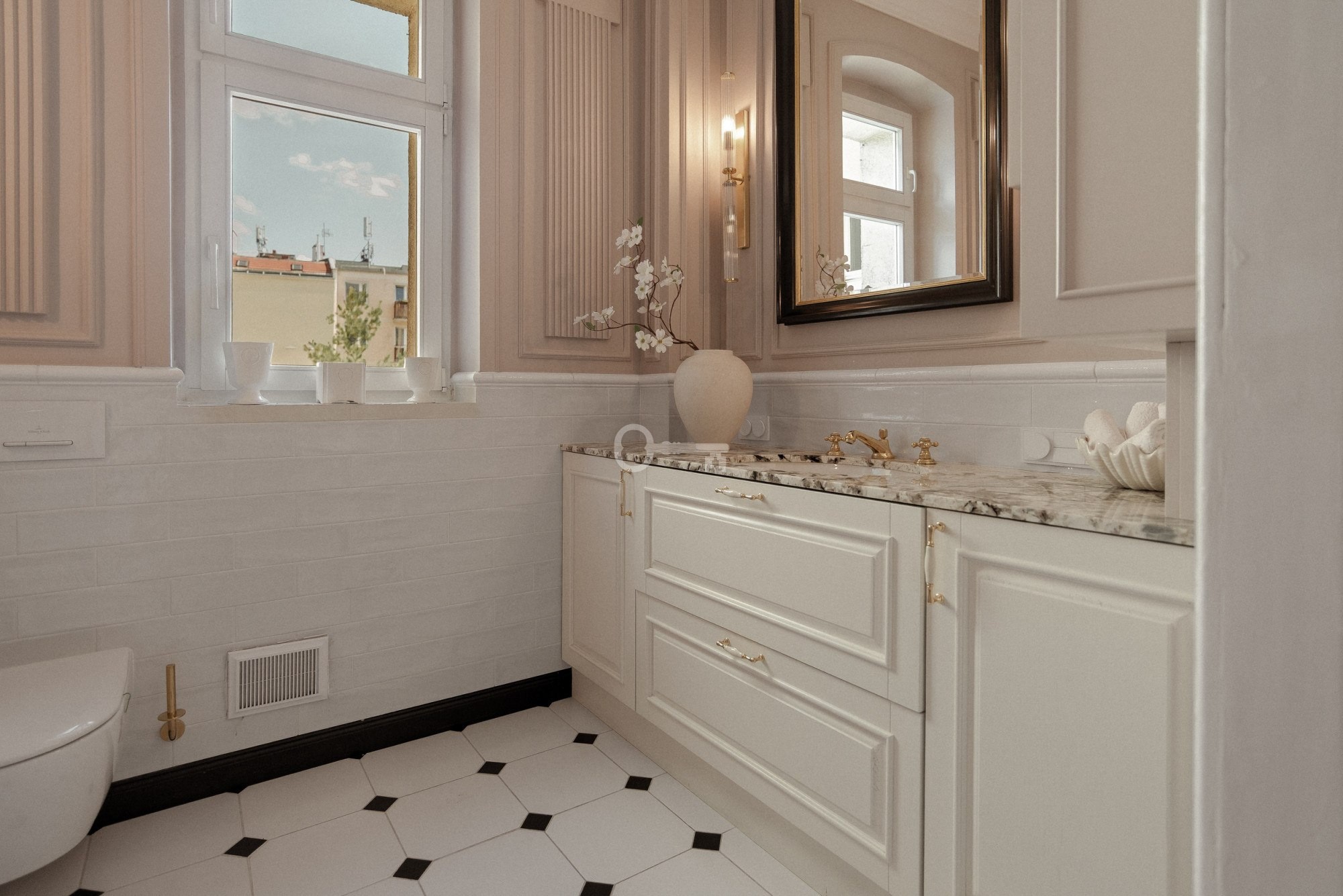 L’appartement a été entièrement rénové et est vendu meublé. Équipements : sols et éléments fixes en chêne massif, marbre naturel et pierre de quartz, mobilier sur mesure, éclairage de Vistosi, Masiero et Kutek. Cuisine équipée d’appareils Smeg et Elica, système audio Sonos, bio-cheminée dans le séjour, salle de bains avec baignoire îlot et robinetterie Hansgrohe. Chauffage au gaz. Charges de copropriété d’environ 500 PLN par mois. Pleine propriété avec inscription au registre foncier. Places de stationnement disponibles à proximité.