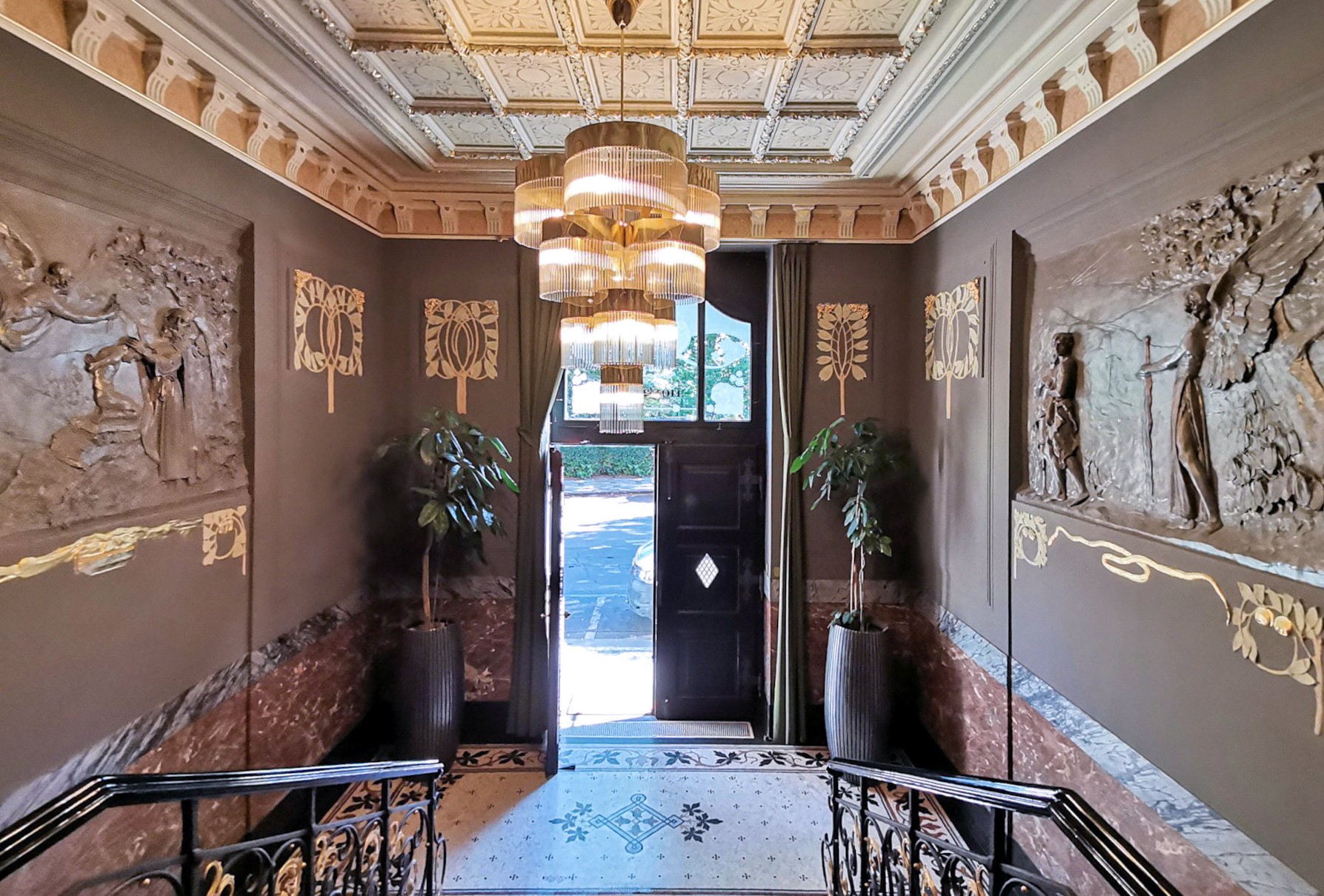 Hall d'entrée Cheminée Balcon Fresques