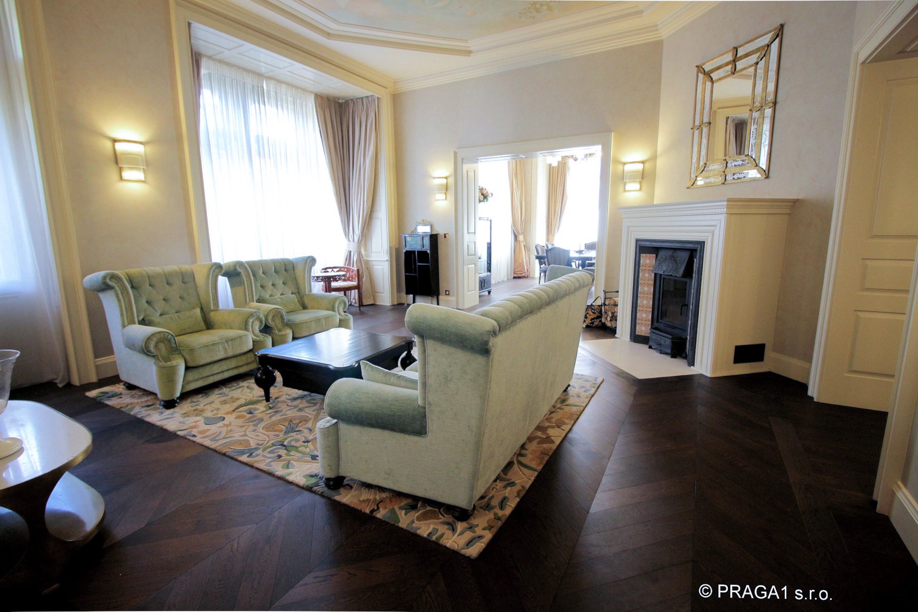 Appartement spacieux situé dans un immeuble historique au centre de Prague, directement sur la promenade le long de la Vltava. L’appartement offre une surface de 280 m² et se trouve au troisième étage, avec balcon et vue sur la rivière.