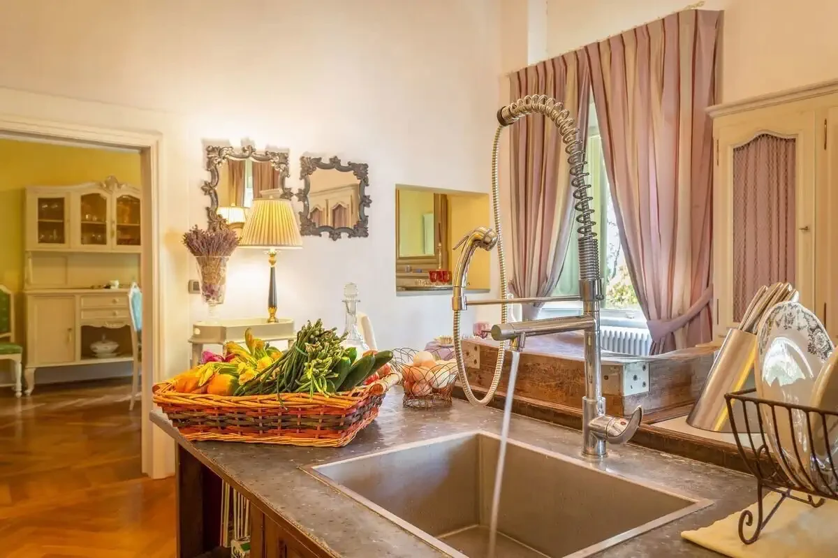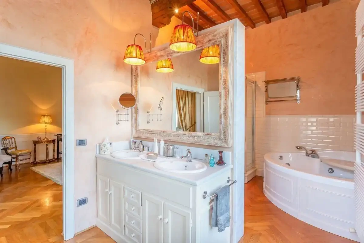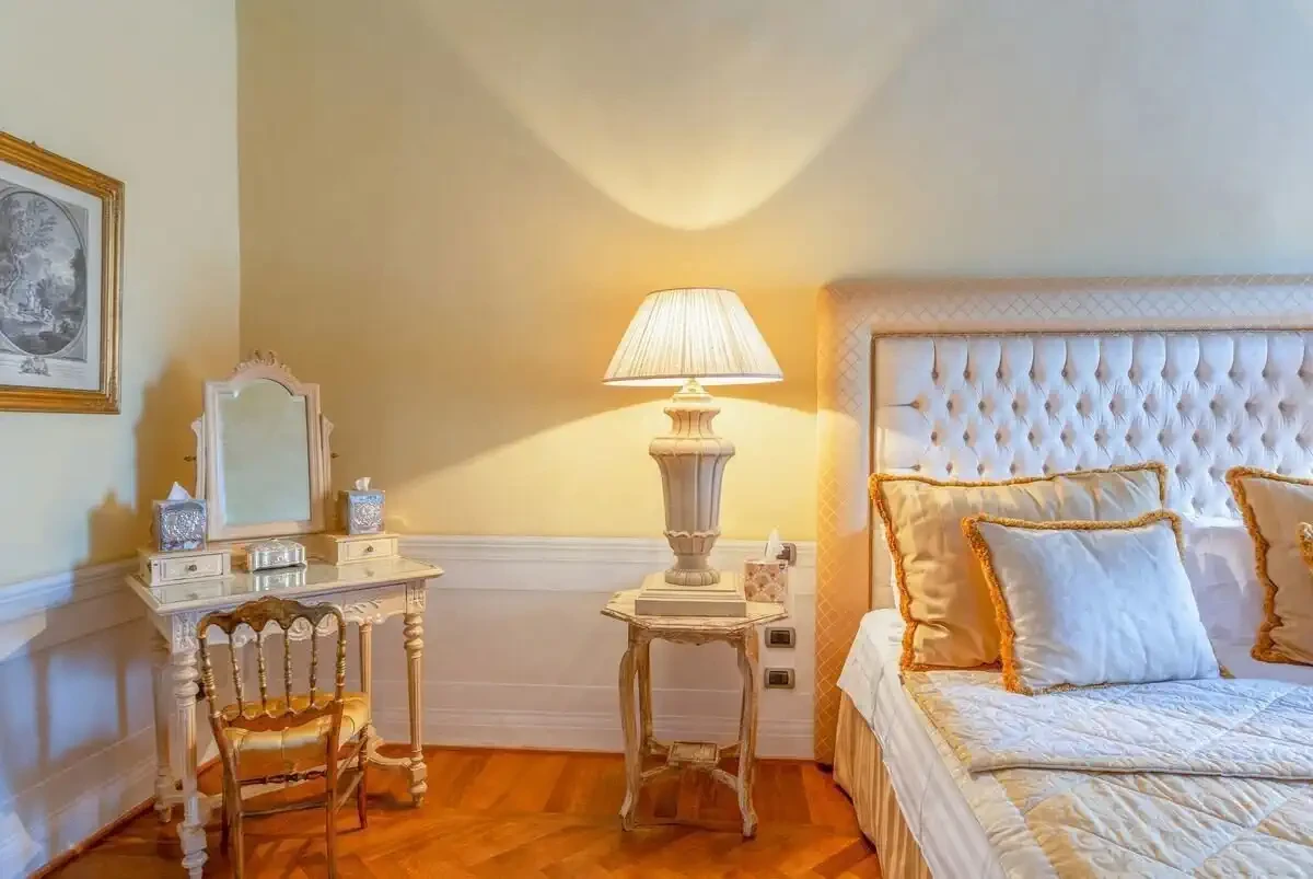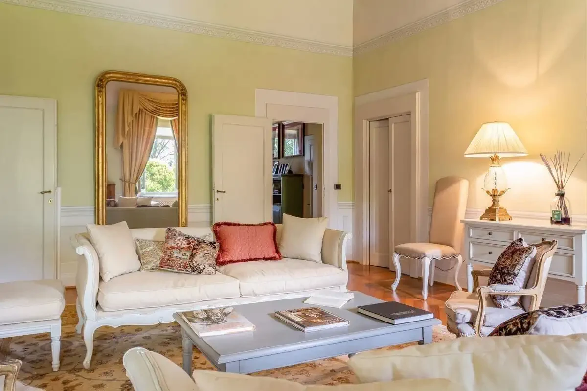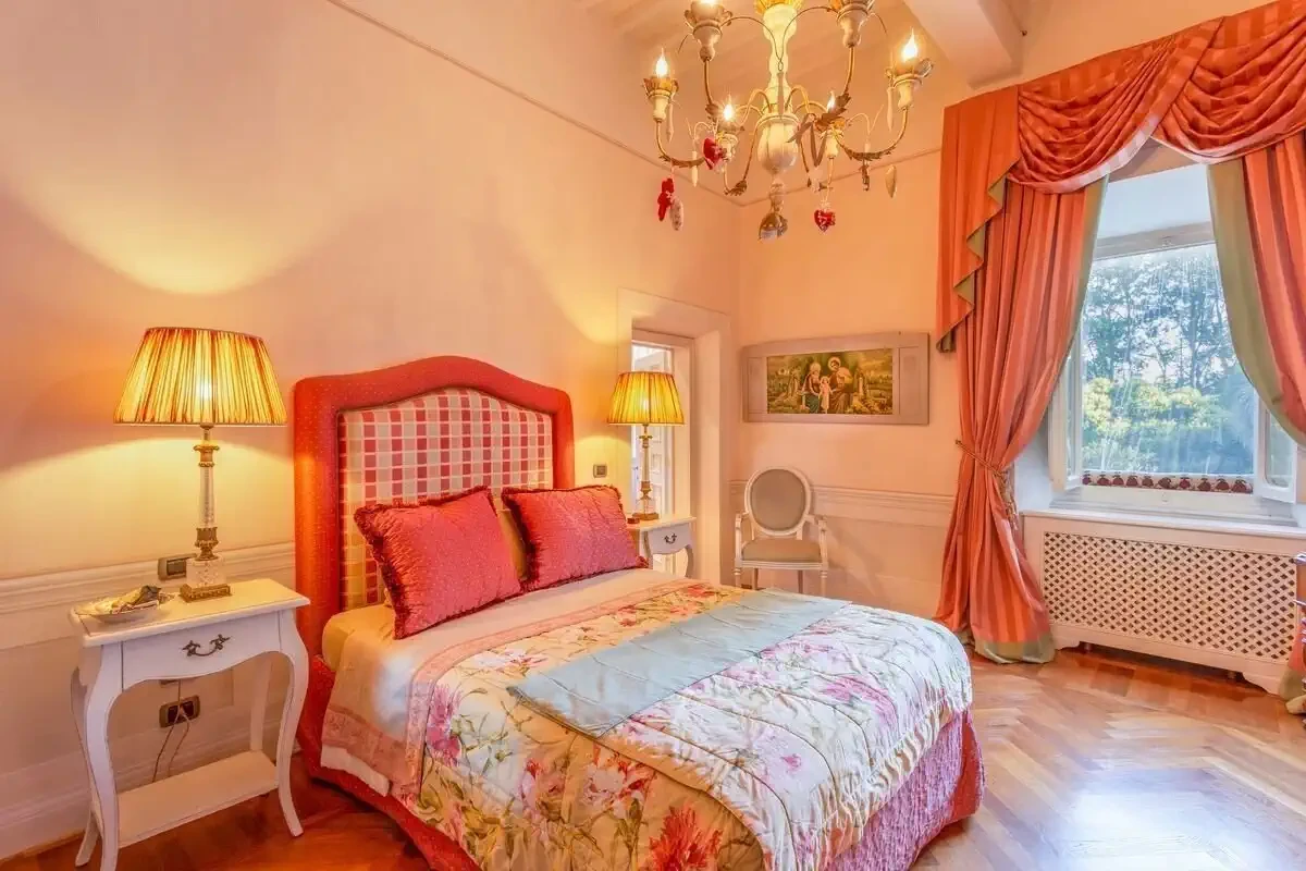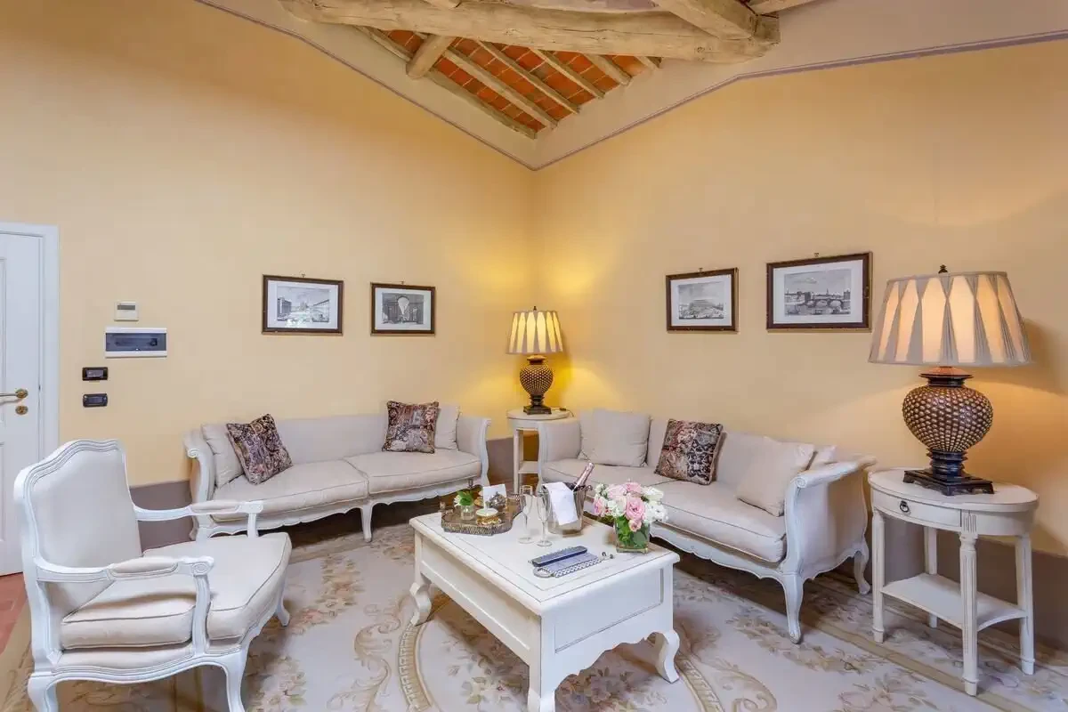 La demeure conserve l’esprit d’une résidence aristocratique toscane avec salons d’apparat, ouvertures sur le parc, terrasses et loggias. Les 13 suites bénéficient de surfaces généreuses, de salles d’eau contemporaines et de climatisation.