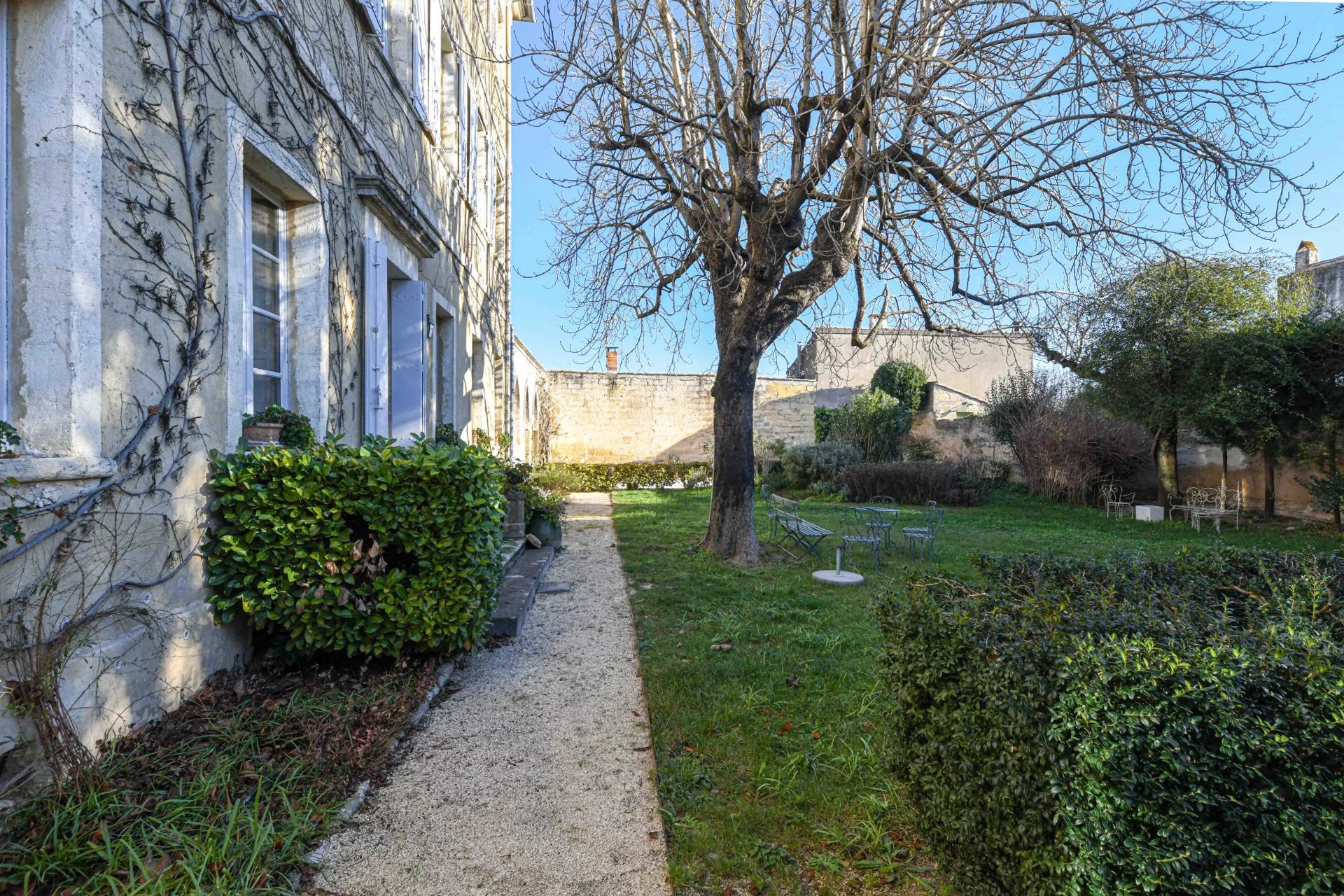 Der angelegte Garten mit altem Baumbestand verfügt über eine bemerkenswerte Orangerie, einen Poolbereich (11 × 6 m) sowie eine überdachte Terrasse.