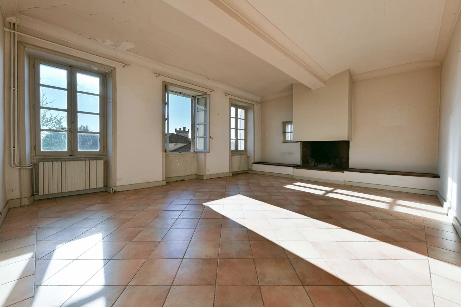 Hall d'entrée Grand escalier Cheminée Plafonds hauts Cour intérieure
