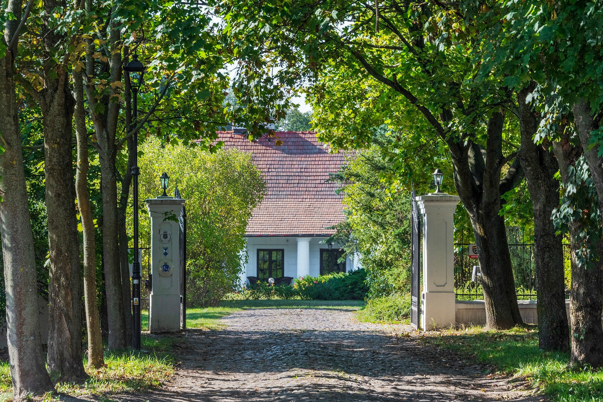 Manoir principal et annexe : Manoir du XVIIIe siècle, reconstruit et restauré par les propriétaires actuels en 1996. Le manoir est inscrit au Registre central des monuments. Une allée pavée historique, bordée de sycomores, mène au manoir. L'entrée est impressionnante, avec deux panthéons. La surface du bâtiment principal du manoir est de près de 994 m². La surface totale comprend le rez-de-chaussée, le grenier aménageable et un sous-sol sur ¼ du bâtiment. Le bâtiment a une fonction résidentielle et de maison d'hôtes. La surface bâtie dans le périmètre est de 442 m².