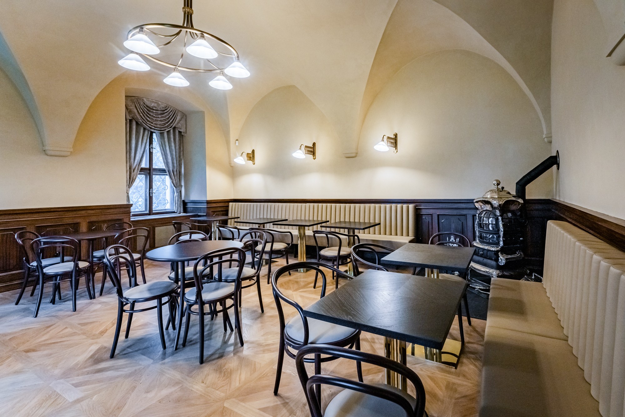Der nördliche Flügel bewahrt die ursprünglichen Renaissancekeller (114,9 m²), nutzbar als Weinlager oder Bar. Im Erdgeschoss befinden sich ein stilvolles Café mit Bar (86 m²), zwei Wohnungen (31 m² und 26 m²) sowie Sanitärräume. Im ersten Stock wurden vier weitere Wohnungen mit 29–42 m² eingerichtet.