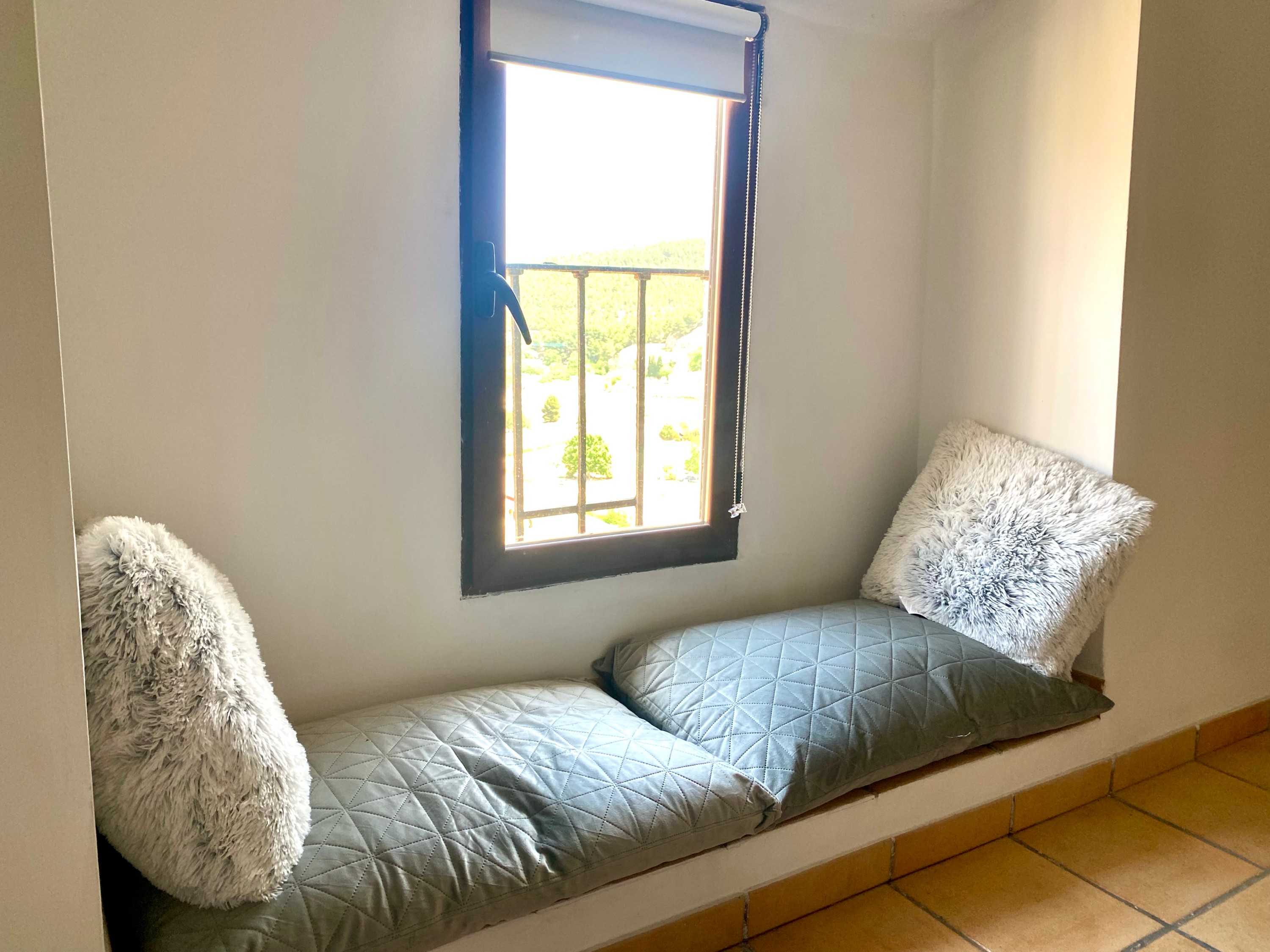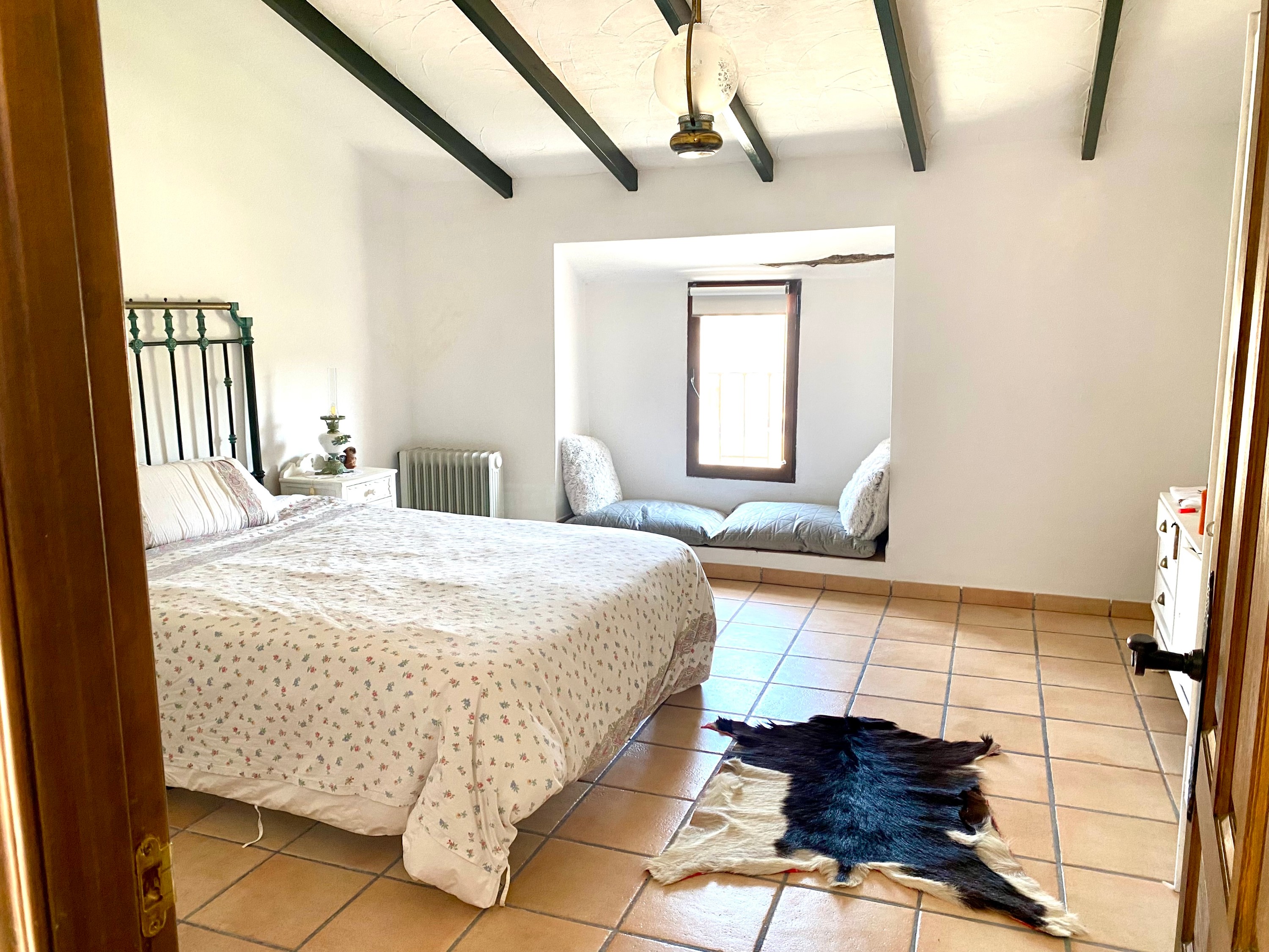 L’ancien grenier a été transformé en un logement indépendant moderne comprenant trois chambres, une salle de bains, deux salons, une mezzanine et un espace prêt à accueillir une cuisine. Cette partie dispose également d’une terrasse offrant une belle vue sur le village et les montagnes environnantes.