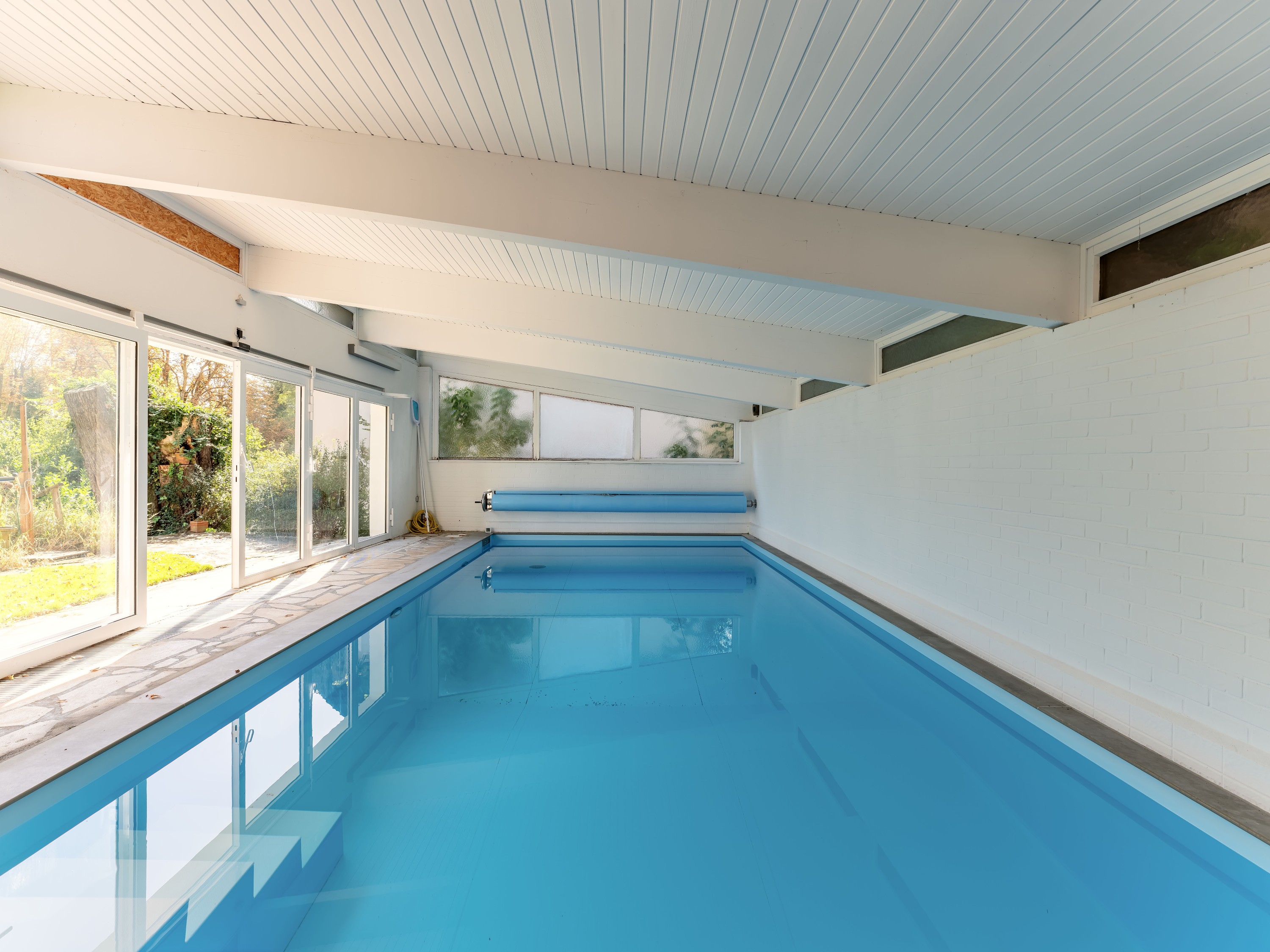 Depuis le hall principal, deux portes symétriques ouvrent sur une salle à manger ouverte, connectée à une cuisine élégante dotée d’un îlot central d’inspiration ancienne. Le salon principal, avec sa cheminée, occupe un angle du rez-de-chaussée et donne accès à une véranda chauffée, baignée de lumière. Une seconde cuisine, discrètement placée, fait également office de buanderie. Le rez-de-chaussée comprend en outre un bureau avec vue sur le jardin, un WC invité et un vestiaire.
