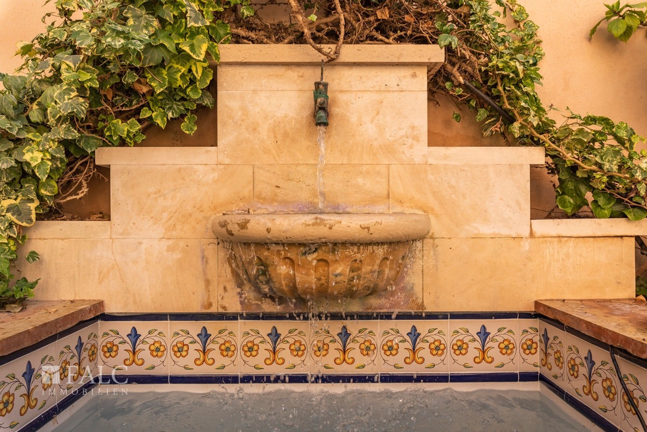 Het stadspaleis biedt zeven slaapkamers en vier badkamers, waarvan twee en suite, een ruime keuken met open haard, een grote eet- en woonkamer, wijnkelder, zolder, evenals een wasruimte en berging. De garage met elektrische poort biedt plaats aan vier voertuigen. Voorzieningen omvatten airconditioning, centrale verwarming, een geluidsinstallatie, alarmsysteem en drie waterputten.