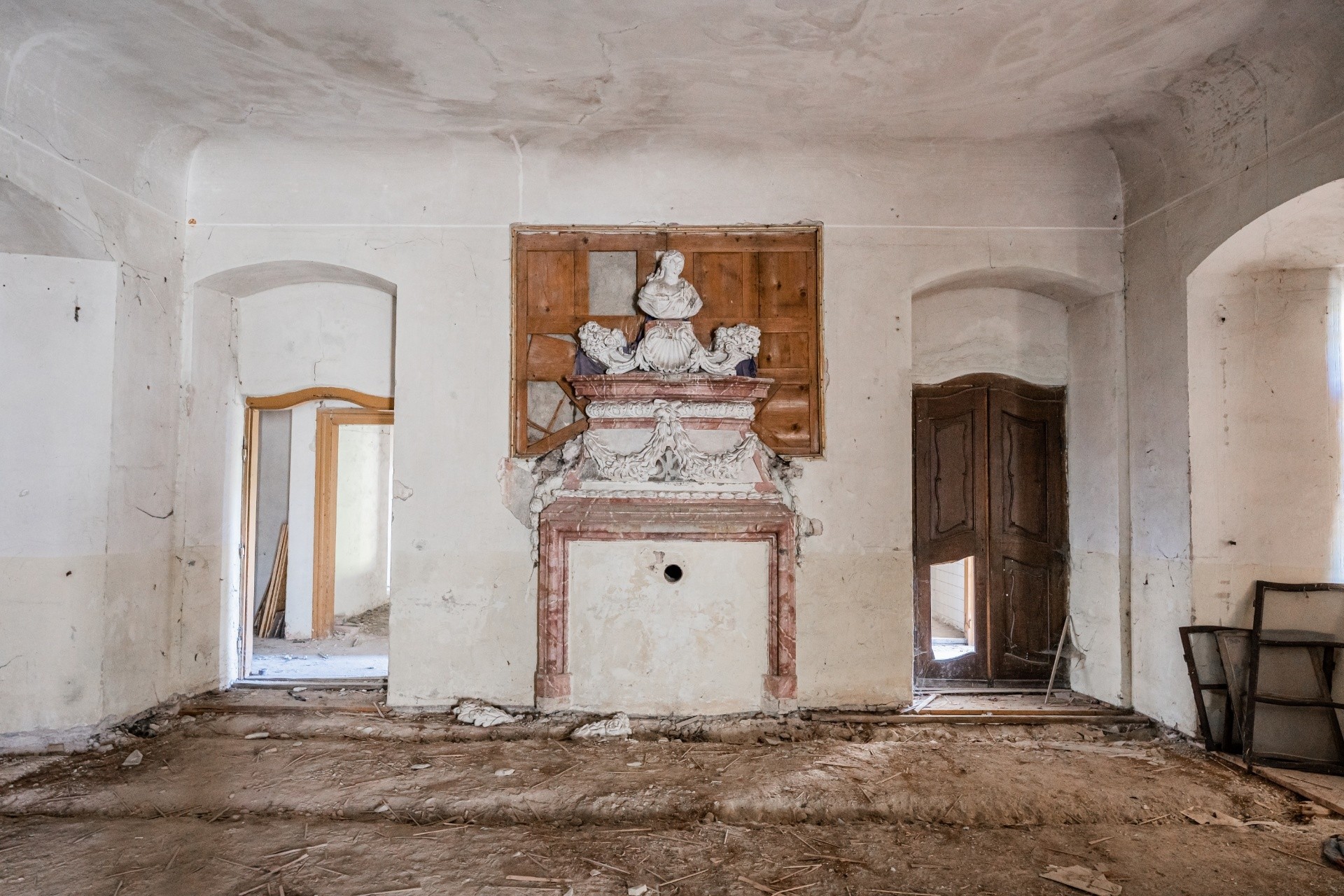 Bijzondere aandacht verdient de balzaal in de linkervleugel: deze is voorzien van een barokke schouw en biedt via een stenen tuinbrug directe toegang tot de terrastuin. Het interieur wordt gekenmerkt door stucwerk, illusoire schilderingen en fresco's. Hoewel een deel van de fresco's in 1956 werd gerestaureerd, ademen de ruimtes de oorspronkelijke representatieve sfeer van de barok uit.
