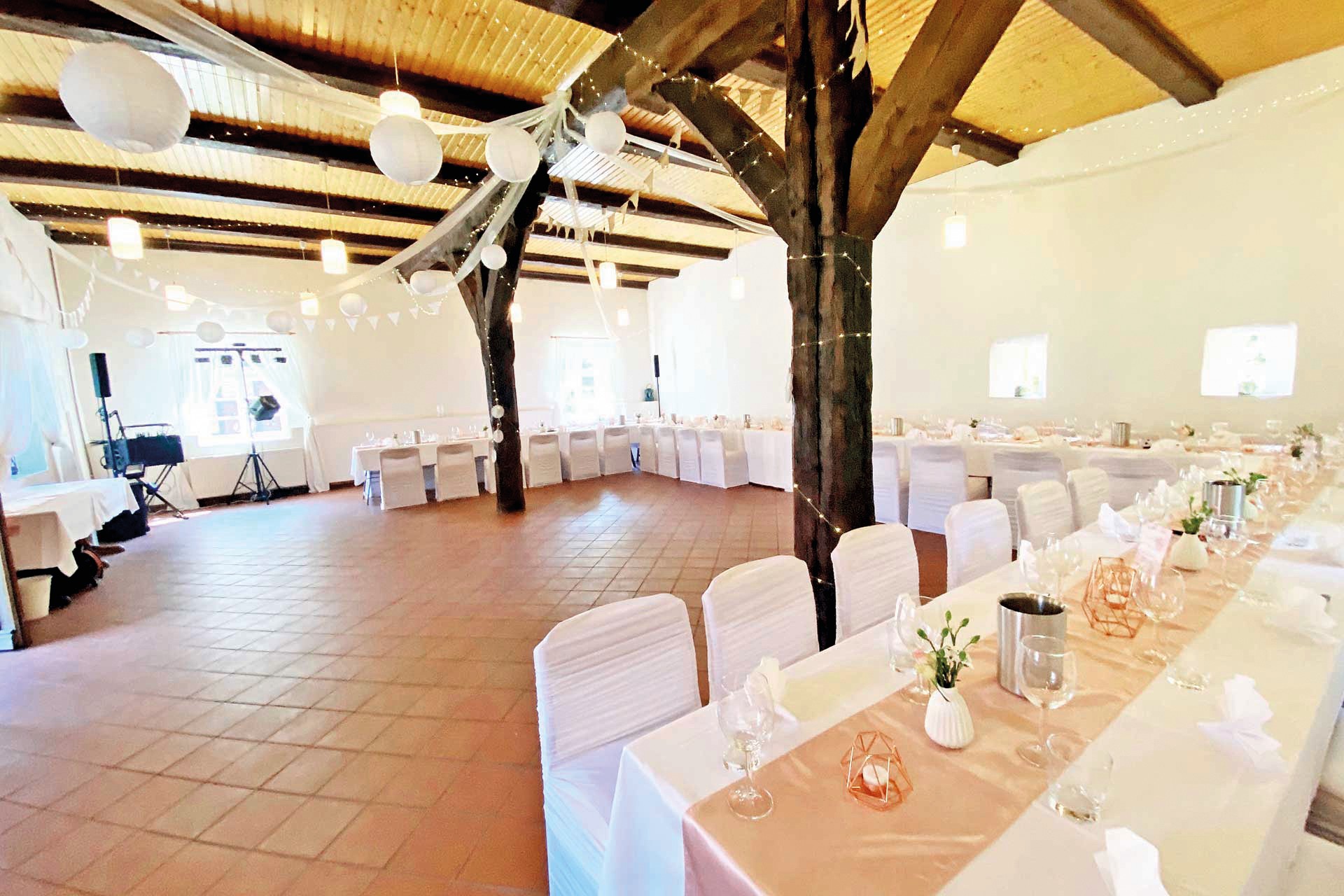 - Insgesamt ca. 2.692 m² Wohn- und Nutzfläche; Hauptburg ca. 1.248 m², ca. 420 m² Ausbaureserve im Dachgeschoss. 15 Gästezimmer (12 renoviert) in den 2 Obergeschossen und im Turm, untere Ebene mit Rittersaal, Salons, Festsaal und Kapelle, Gastro-Küche Torhaus ca. 200 m² Grundfläche + 180 m² im 1. OG, Einbau moderner Sanitäranlagen mit Duschen und WCs 2022 Scheune ca. 424 m² Grundfläche + ausbaufähiges OG Kornspeicher ca. 120 m² als Veranstaltungsraum im EG, Dachgeschoss ausbaubar
