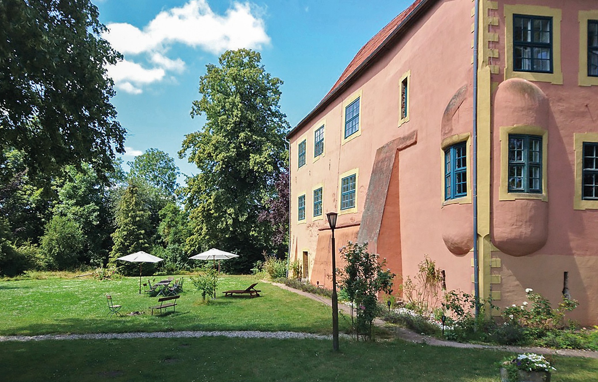 Die historische Wasserburg zählt zu den eindrucksvollsten Denkmalanlagen Vorpommerns und ist bis heute ein bedeutendes Zeugnis norddeutscher Baukunst. Das Anwesen stammt aus dem 12.–15. Jahrhundert und umfasst ca. 19 ha Land mit Wald, Wiesen, Gärten und Park. Das Hauptgebäude bietet derzeit in den oberen 2 Stockwerken und im Turm 15 Gästezimmer (12 davon renoviert mit 36 Betten), im Erdgeschoss den historischen Festsaal mit italienischer Renaissance Stuckdecke und Ölgemälden, Eichenparkett und Kronleuchter; die blaue Kapelle mit arkadischen Wandmalereien aus dem 18. Jahrhundert, Rittersaal, Salons und der großen Burgküche. Es bestehen vielfältige Nutzungsoptionen für Beherbergung, Kultur, Seminare und Events. Das mittelalterliche Rittergut befindet sich auf einer 4ha großen „Insel“ und ist komplett von einem Wassergraben eingefriedet. Es besteht aus einem Ensemble aus Burg, Torhaus, großer Fachwerk-Scheune, dem reetgedeckten Kornspeicher, Gartenhaus und Pferdestall.