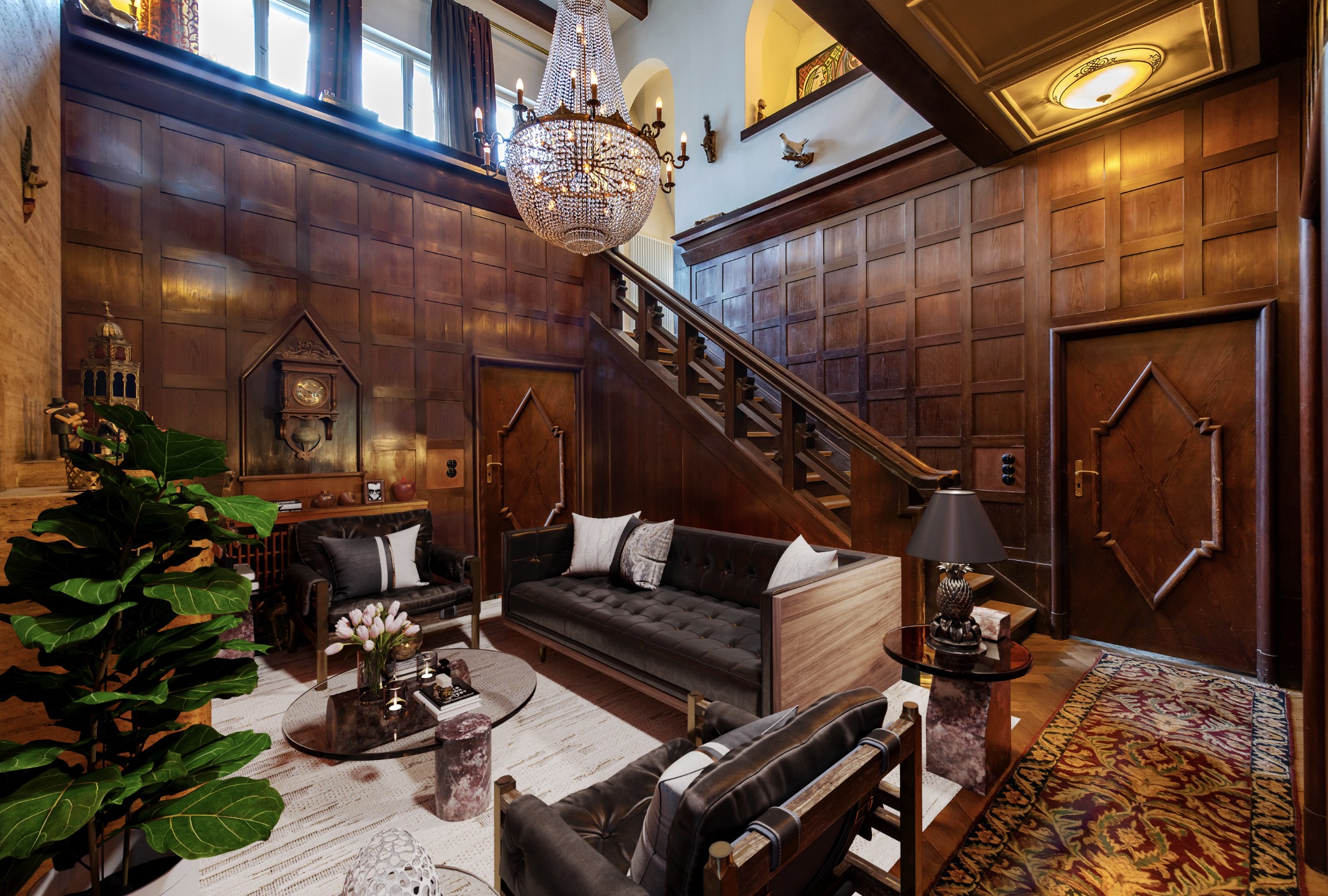Ingangshal Groot trappenhuis Open haard Galerij Terras Wintertuin Hoge plafonds