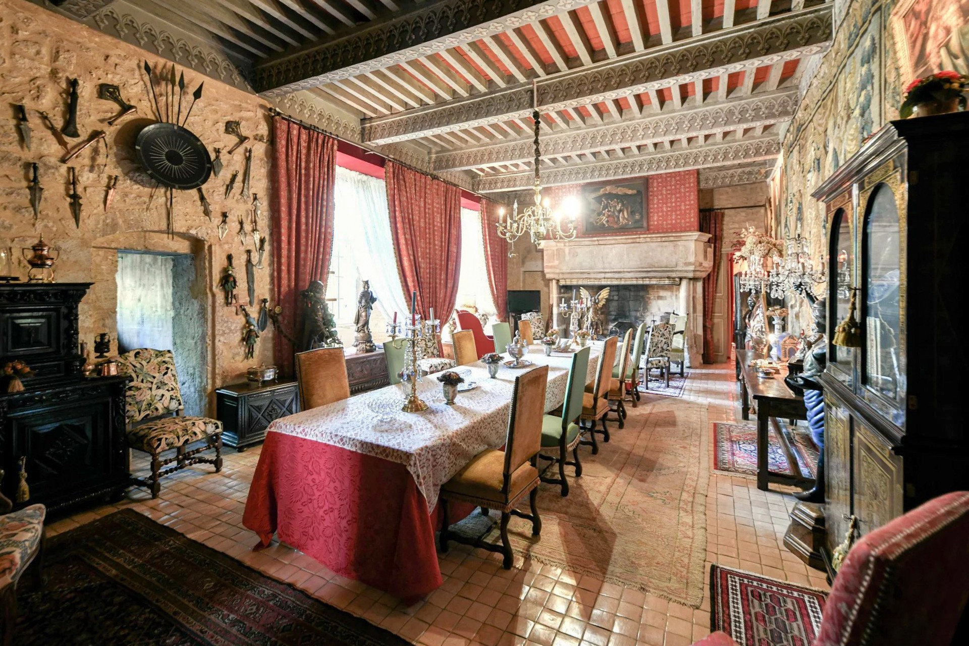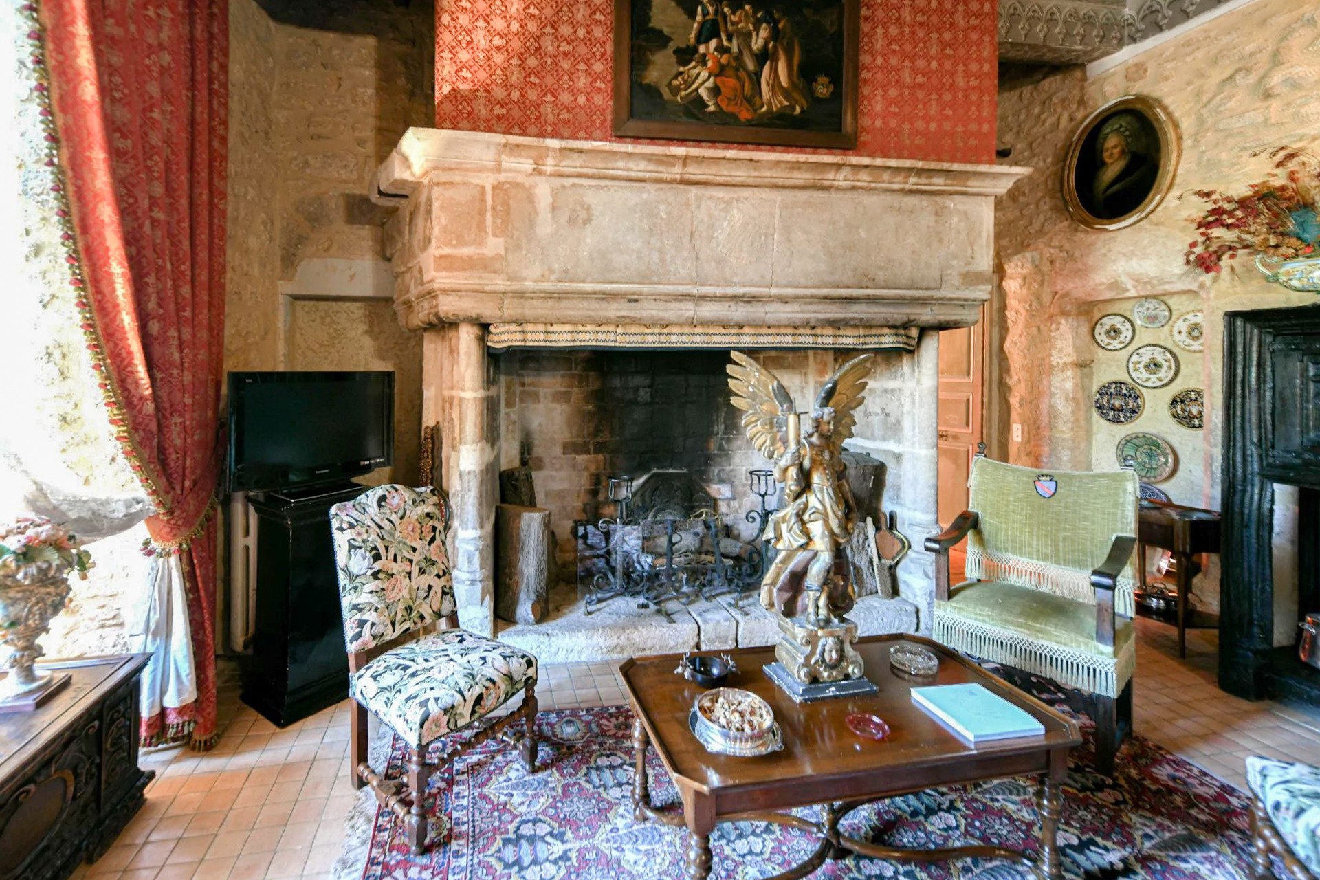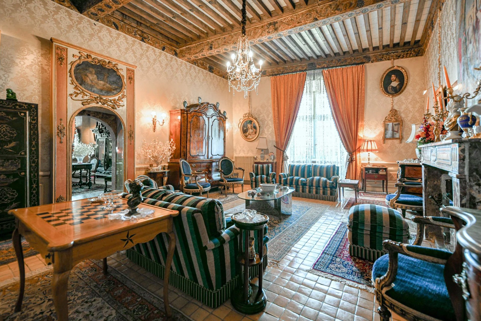 Twee ingangen leiden naar een ruime en indrukwekkende gewelfde salon met een 17e-eeuws plafond. Een prachtige trap voert naar de bovenverdieping met twee salons, een elegante eetkamer met open haard en een bibliotheek. Een ruime gang geeft toegang tot een kantoor, de keuken en een schitterende hoofdsuite van 100 m².