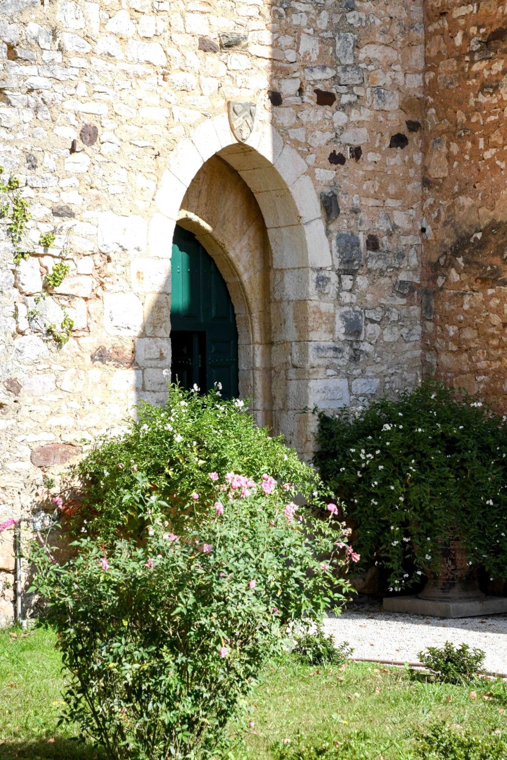 De imposante poort opent naar het ereplein, met een herenkapel, drie garages, een schitterende stalling, een volière en een paardenstal. Het geheel omvat ook een conciërgewoning met twee salons, een keuken, drie slaapkamers en een badkamer, evenals een gastenstudio.