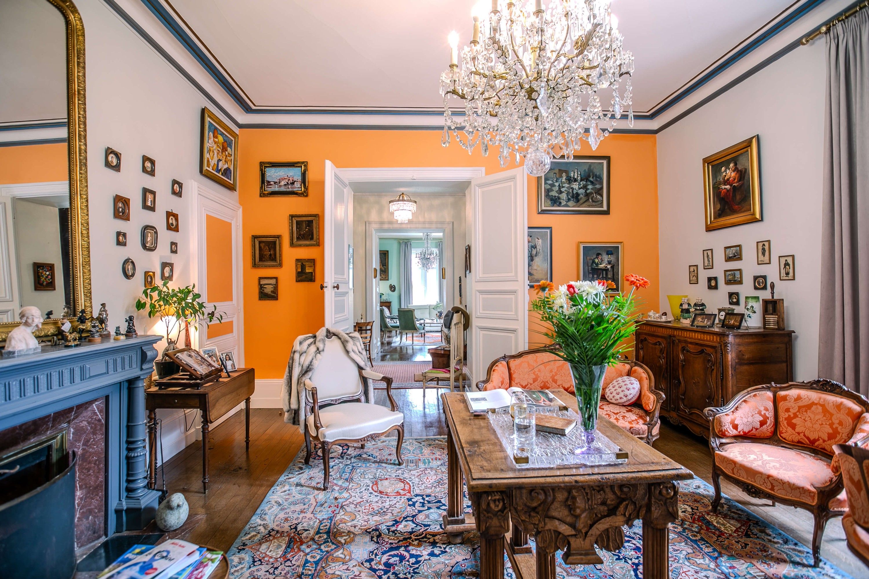 Dit magnifieke 19e-eeuwse pand vermengt meesterlijk de charme van vervlogen tijden met een omgeving die ideaal is voor ontspanning en gezellig samenzijn. De architectuur van het château is een waar bewijs van 17e-eeuws Frans design, geïnspireerd door de Franse maniërisme, maar verheven door het Second Empire-stijl. Het gebouw kenmerkt zich door een imposante façade met symmetrische vleugels, die leidt naar een indrukwekkende hoofdingang, omlijst door steenwerk, en zo een aristocratische uitstraling biedt. Het leien dak, versierd met charmante driehoekige dakkapellen, versterkt het statige gevoel van deze historische residentie.