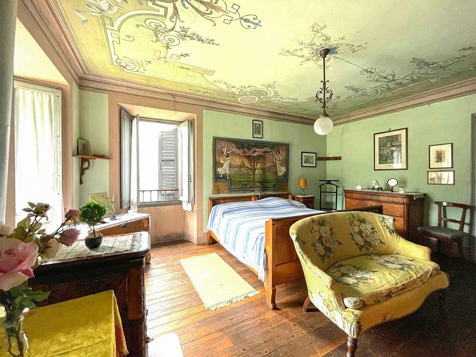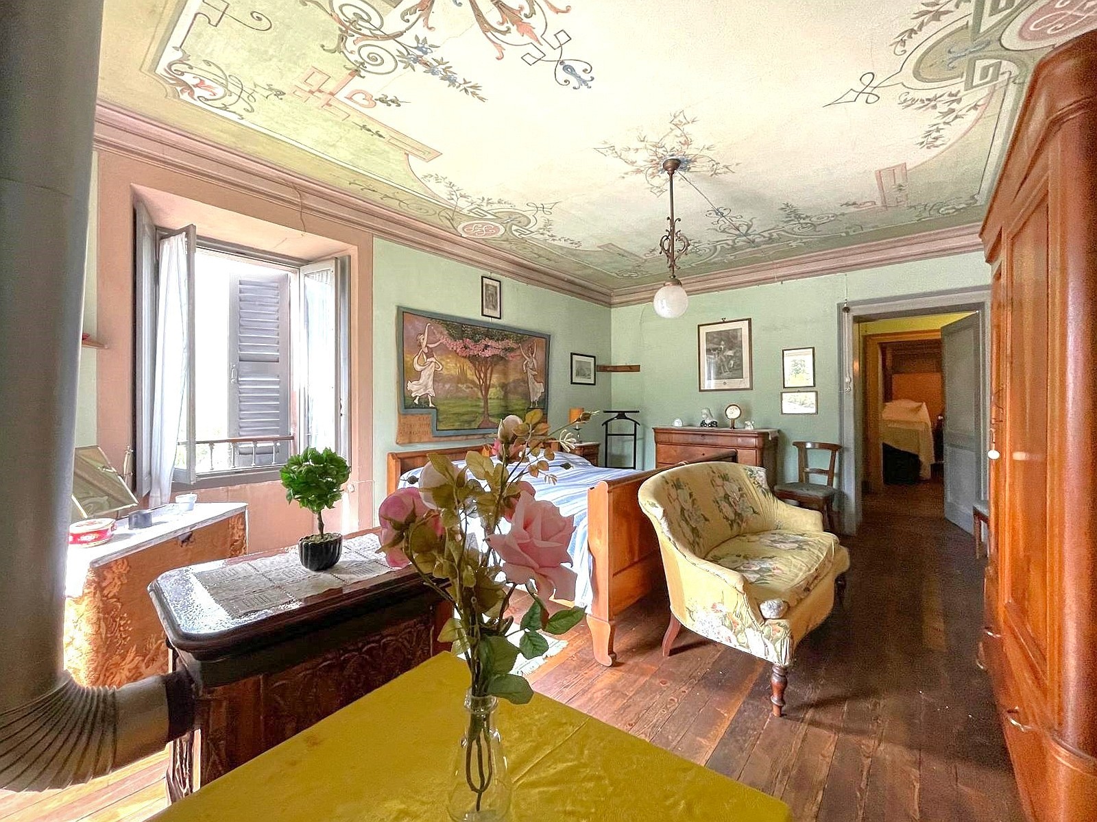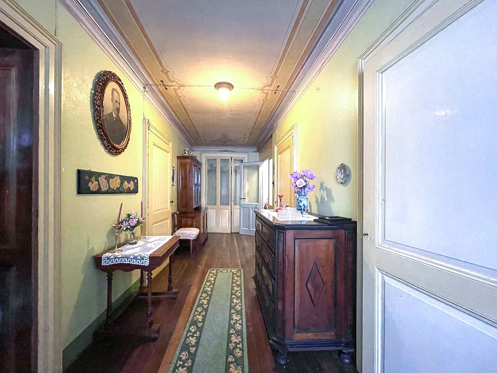 Wij bieden u een historische woning aan, een gebouw met karakter, dat zich onderscheidt door zijn elegantie en originaliteit. Het pand strekt zich uit over vier verdiepingen en biedt ruime en gezellige ruimtes met originele architectonische details zoals wandpanelen, fresco's en stenen vloeren.