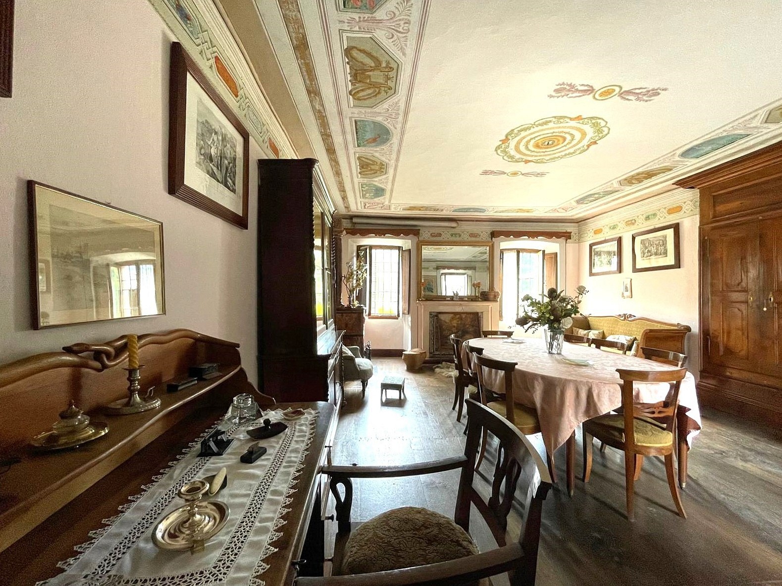 Ingangshal Open haard Balkon Fresco's Binnenplaats