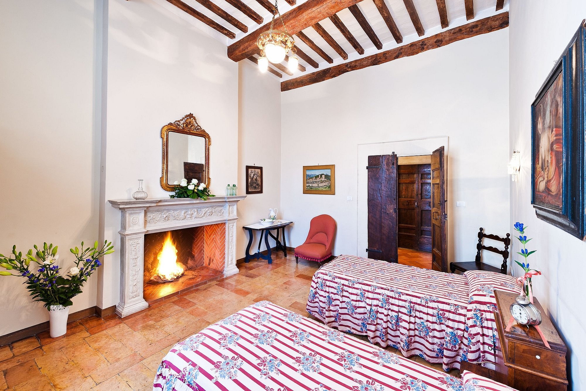 De residentie omvat zes luxe tweepersoons suites, elk met een eigen karakter en uitzicht op de tuin. Fresco’s, antieke terracottavloeren en zichtbare balken versterken de historische sfeer. Moderne en-suite badkamers zijn elegant gerenoveerd, terwijl hoge plafonds en grote ramen het gevoel geven in een adellijke residentie te wonen, met alle hedendaagse gemakken.