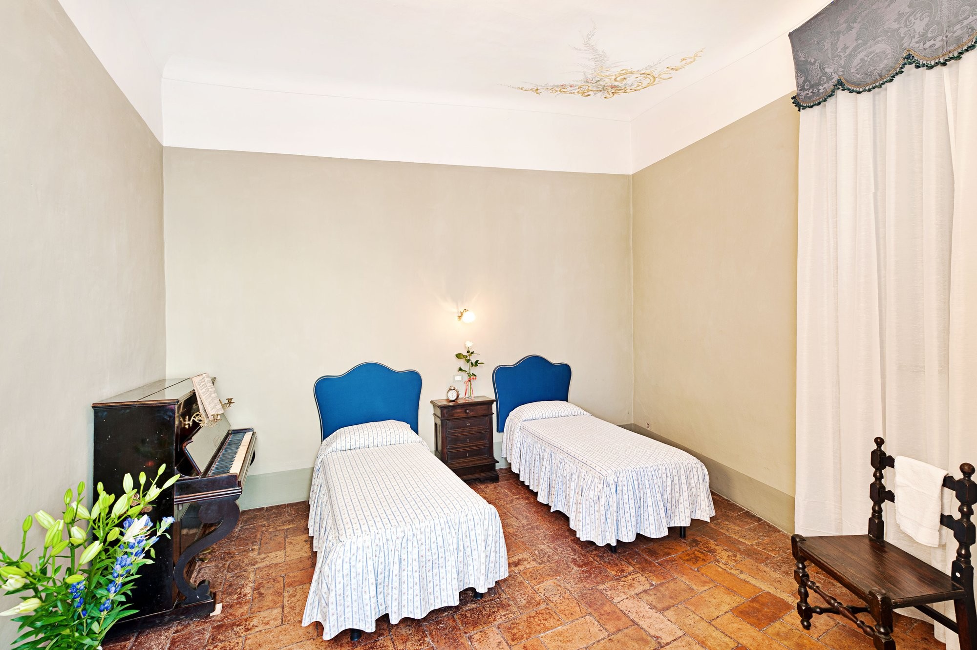 De linker vleugel herbergt het piano nobile, met originele renaissanceornamenten, hoge handgeschilderde fresco’s en muren die meer dan 500 jaar Italiaanse geschiedenis hebben meegemaakt. De rechter vleugel beslaat twee verdiepingen met ruime woonruimtes die historische charme combineren met modern comfort. Natuurlijk licht valt door hoge ramen en benadrukt gewelfde doorgangen, decoratieve lijstwerken en gebeeldhouwde deuren – elk detail weerspiegelt de adellijke erfenis van de residentie.