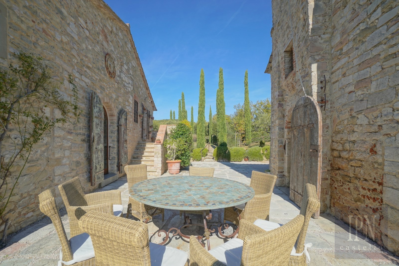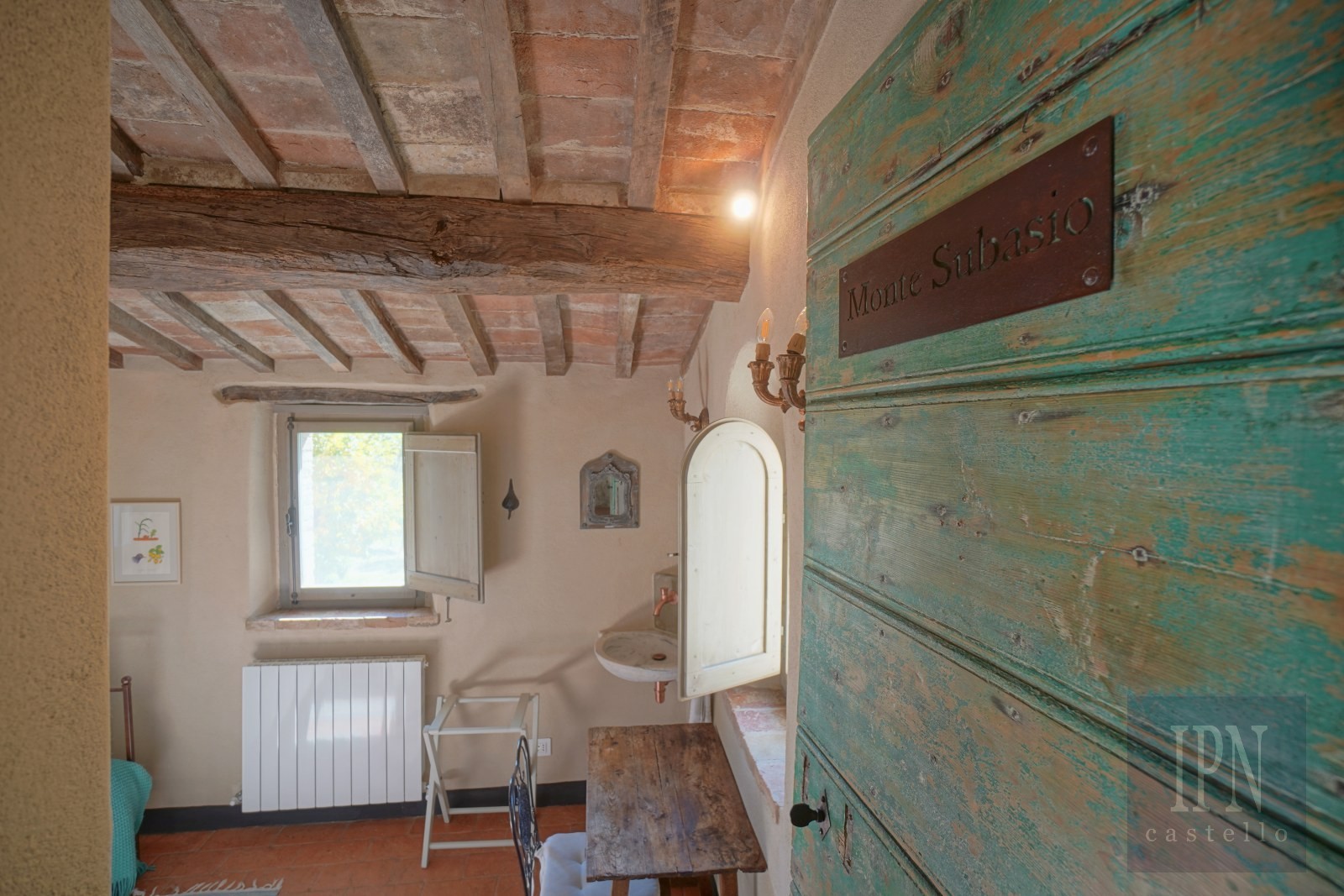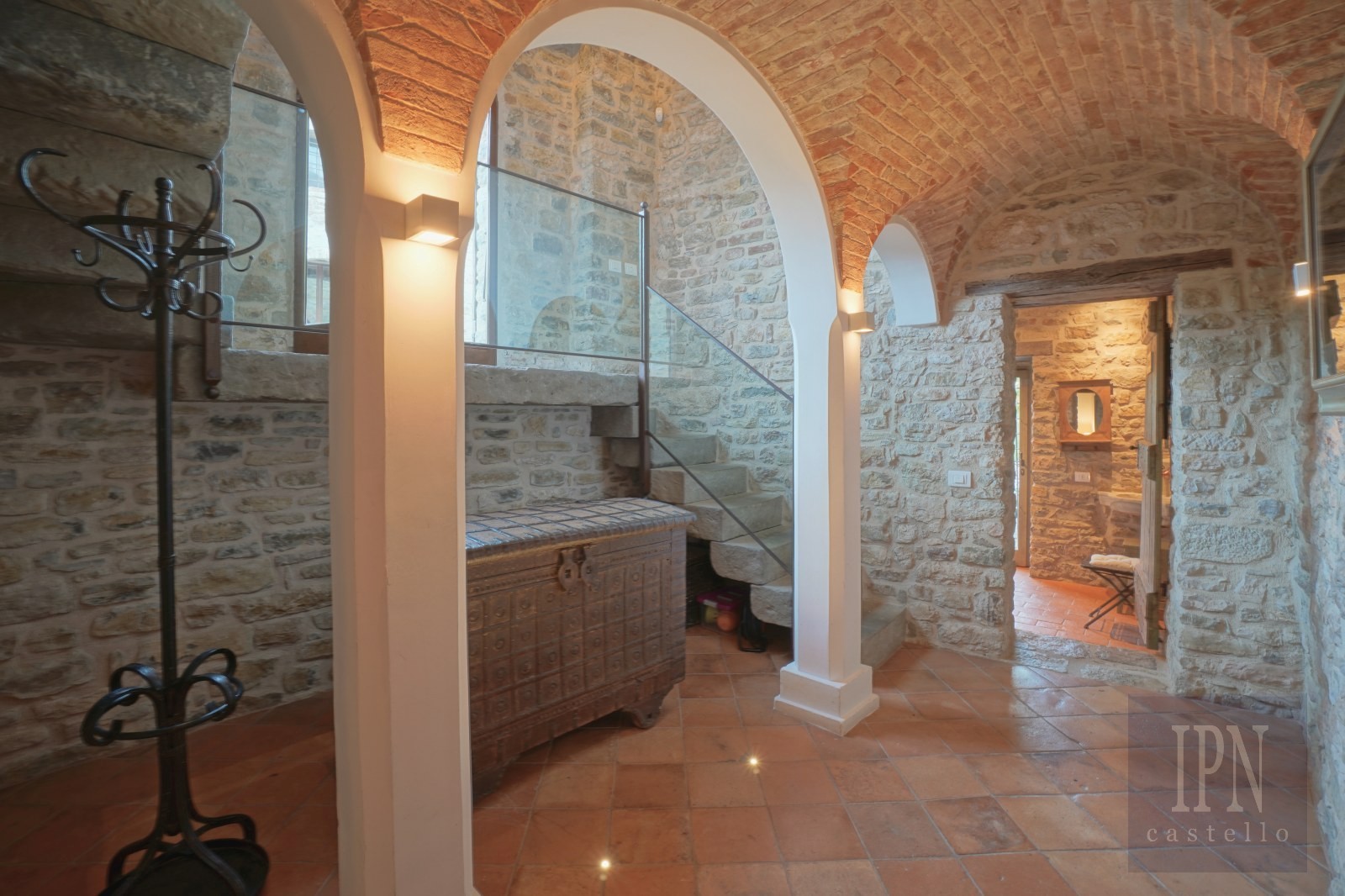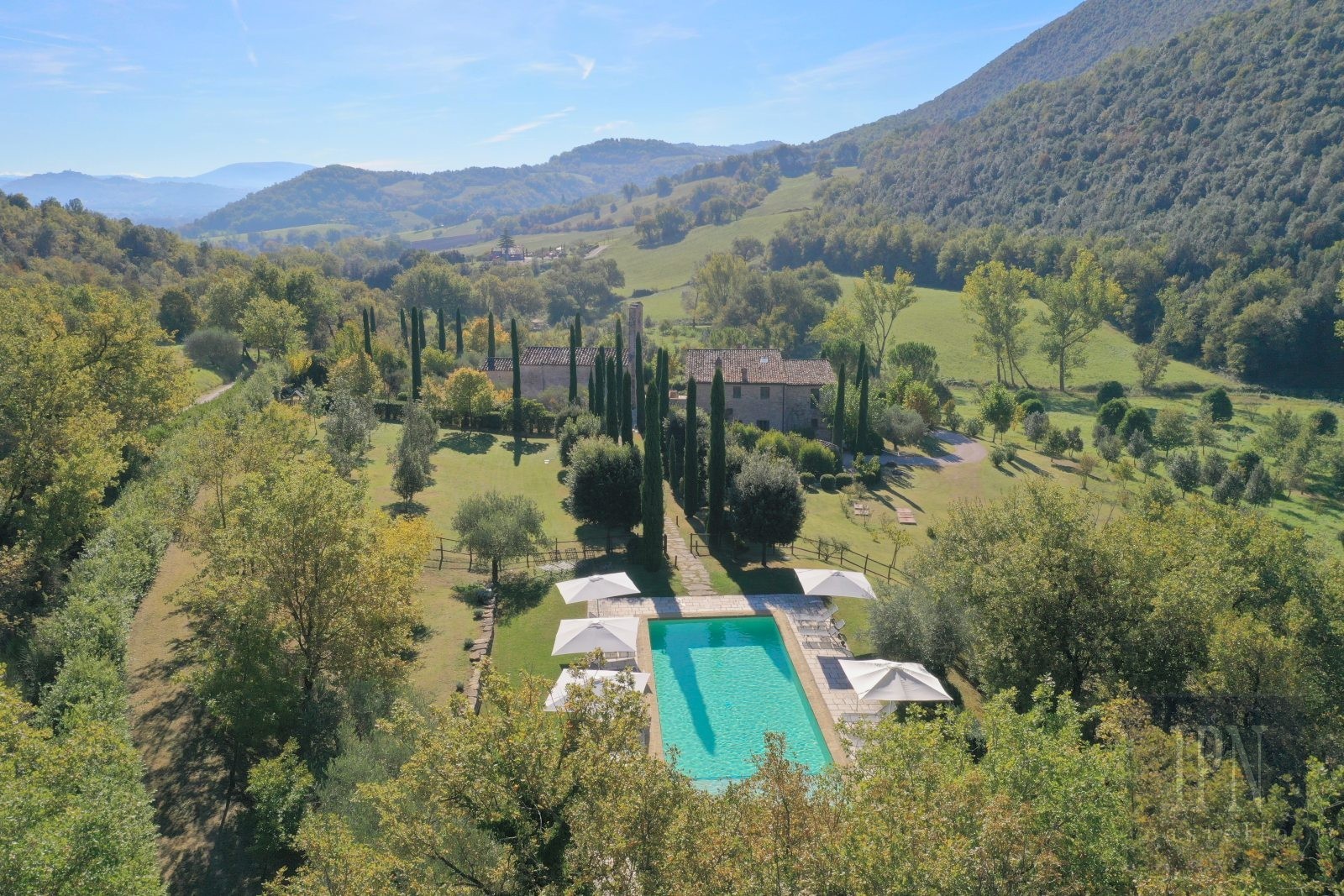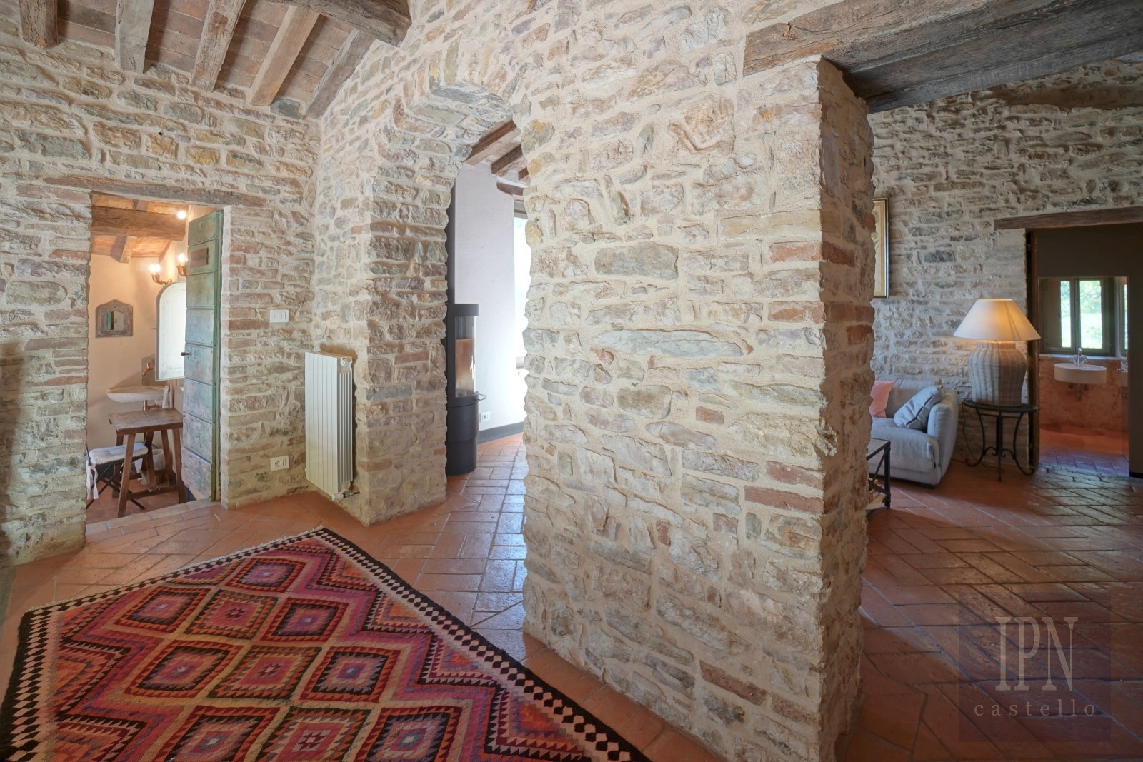 Gelegen in een rustige vallei in Umbrië, omgeven door weilanden, wijngaarden, olijfgaarden en bossen, combineert dit landgoed historische architectuur met modern comfort. Het omvat een kerk uit de 13e eeuw, omgebouwd tot woonruimte, en een landhuis uit de 18e eeuw, beide zorgvuldig gerestaureerd volgens hoge normen.
