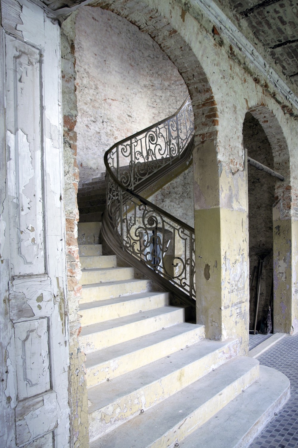 Groot trappenhuis Open haard Betegelde kachel Hoge plafonds