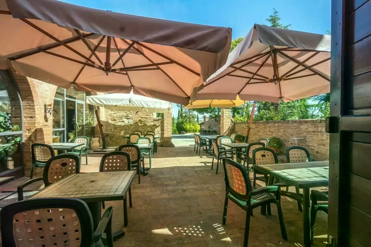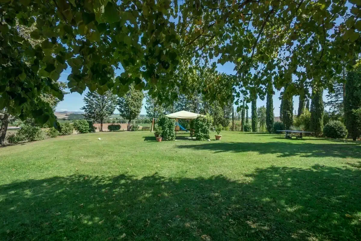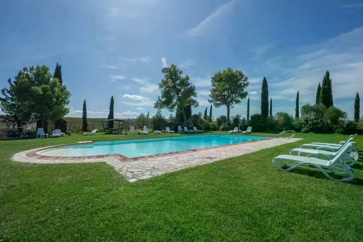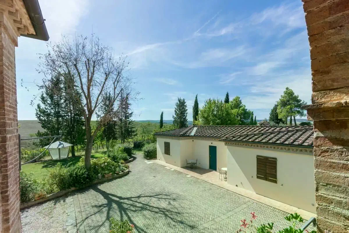 Het landgoed beschikt over een zorgvuldig onderhouden park met zoutwaterzwembad, twee zelfstandige bijgebouwen en paardrijfaciliteiten. De ligging combineert rust op het platteland met een goede bereikbaarheid van de infrastructuur van Siena.
