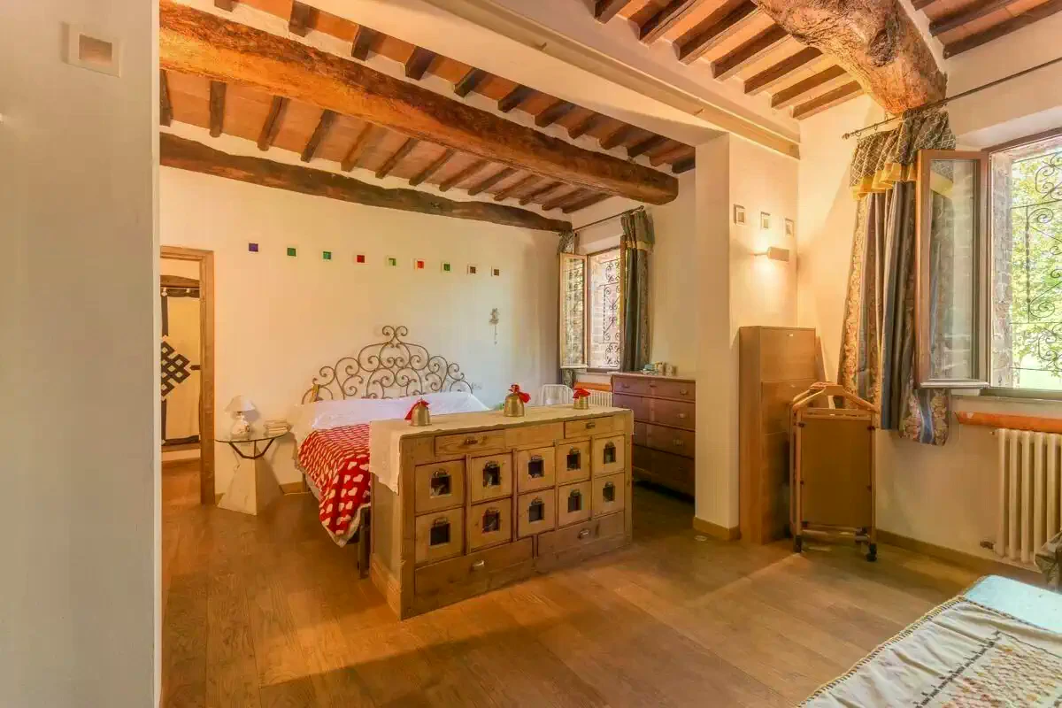 Op slechts tien minuten van Siena, in de glooiende heuvels van Monteroni d'Arbia, ligt Villa Carole – een Toscaans landhuis uit 1550. De restauratie heeft het historische karakter behouden: zichtbare stenen muren, gewelfde loggia’s, houten balken en grote open haarden kenmerken het interieur. Met ongeveer 900 m² aan woonoppervlak kunnen de ruimtes zowel als privéwoning als gastenverblijf worden gebruikt.