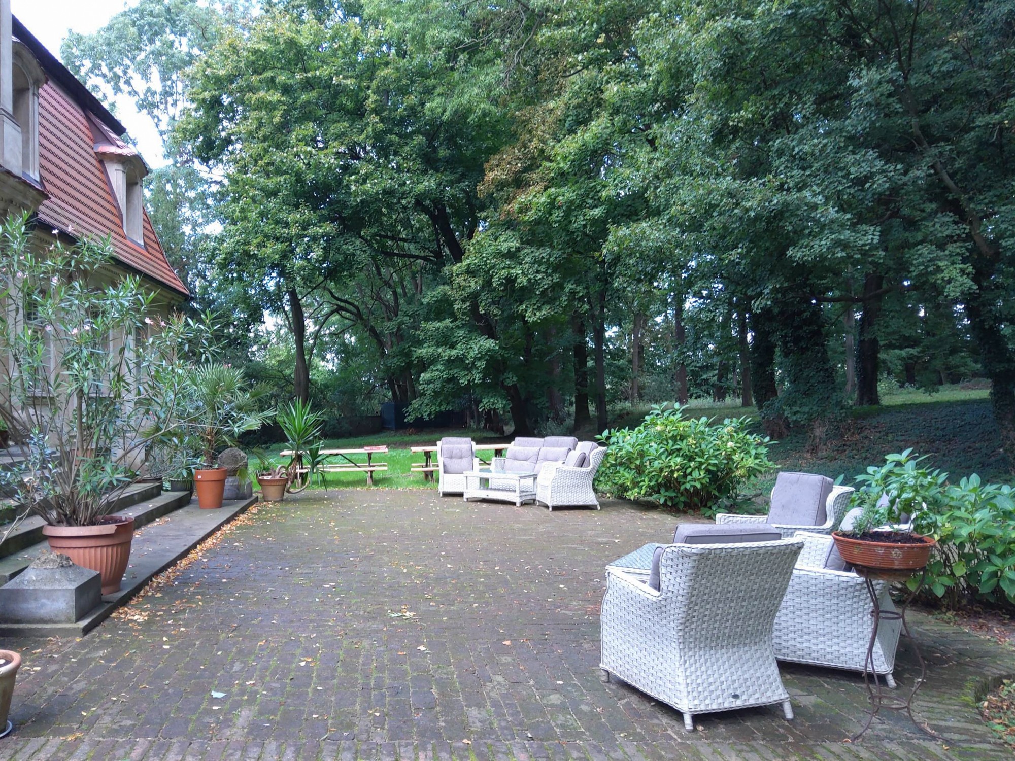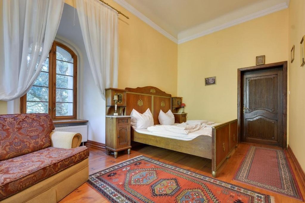 Vanuit het paleis heeft u uitzicht op de vijver, de kapel en het in Engelse stijl aangelegde park met talrijke boomsoorten die als natuurmonumenten zijn geregistreerd.