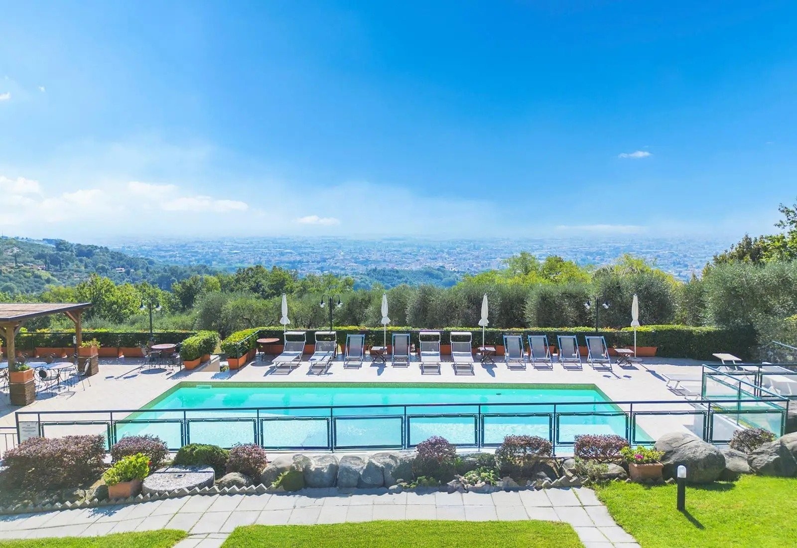 Montecatini Terme ligt aan de voet van het landgoed en staat bekend om zijn thermale baden uit de Belle Époque en art-nouveau architectuur. De stad biedt lokale voorzieningen en treinverbindingen. Florence ligt op 50 km, Lucca op 35 km, Pistoia op 15 km en Pisa op 60 km. De luchthaven van Florence (Peretola) ligt op 55 km en de internationale luchthaven van Pisa op 65 km. De villa combineert privacy, dankzij het privétoegang en de topografie, met gemakkelijke aansluiting op het netwerk van Toscaanse heuveldorpen.
