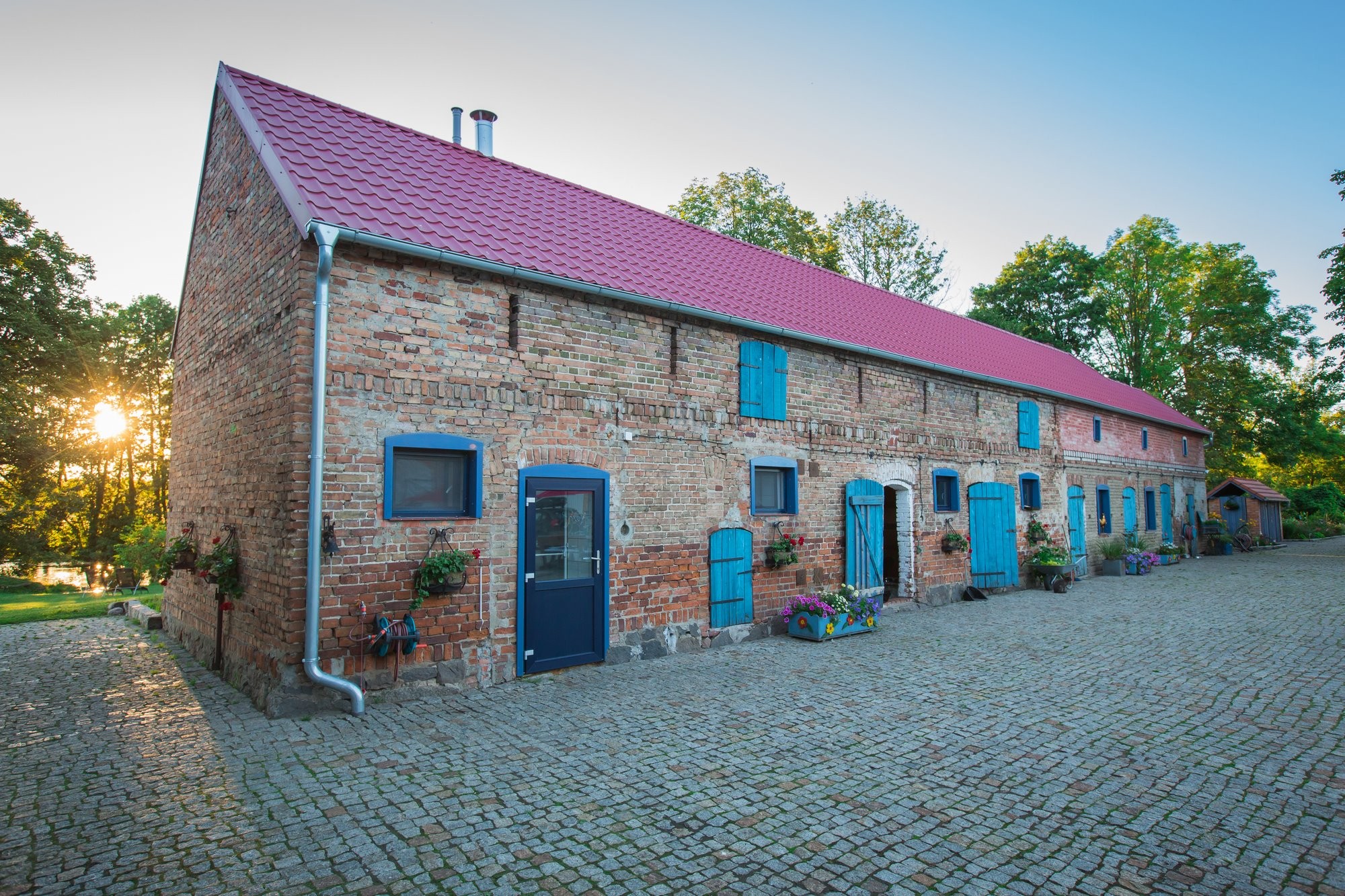 Im Zentrum des Hofs steht das traditionsreiche Herrenhaus von 1890, das 2009 mit viel Liebe zum Detail saniert wurde. Es bietet acht charmante Gästezimmer, zwei Badezimmer, eine große Küche mit Essbereich sowie einen Gewölbekeller. Die Kombination aus historischen Bauelementen, stilvoller Einrichtung und modernem Komfort vermittelt ein besonderes Wohngefühl für anspruchsvolle Gäste.