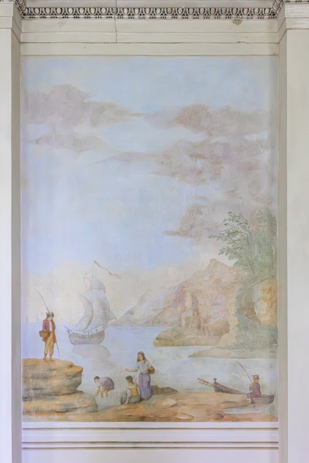Wnętrza pałacu kryją w sobie niezwykły układ, który zaskakuje i intryguje. Hol wejściowy zaprasza do odkrywania kolejnych zakątków tej wyjątkowej rezydencji. Na pierwszym piętrze znajdowały się reprezentacyjne apartamenty, w tym wielka sala jadalna i sala balowa z półkolumnami mozaikowymi. Sala ta została częściowo odrestaurowana, freski odmalowane, okna wymienione. Na parterze mieściły się pokoje mieszkalne i jadalnia z malowidłami al fresco przedstawiającymi widoki Łazienek i pomnik króla Jana III. Co ciekawe, freski w ledwo widocznej formie zachowały się do dzisiaj.