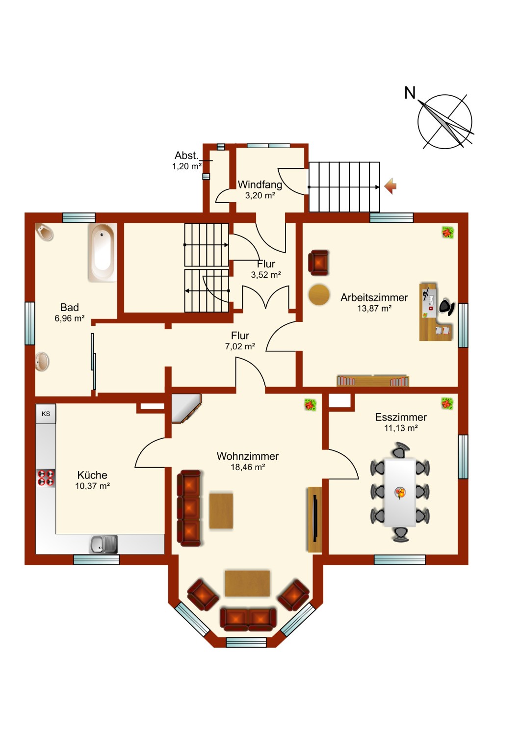 Een bushalte en een bakker zijn binnen enkele minuten te voet bereikbaar. Met de auto bent u in ongeveer 10 tot 15 minuten bij de snelweg en de luchthaven, en in ongeveer 5 minuten bij de dichtstbijzijnde kleuterschool en basisschool. Het nabijgelegen bos is op een paar stappen afstand.