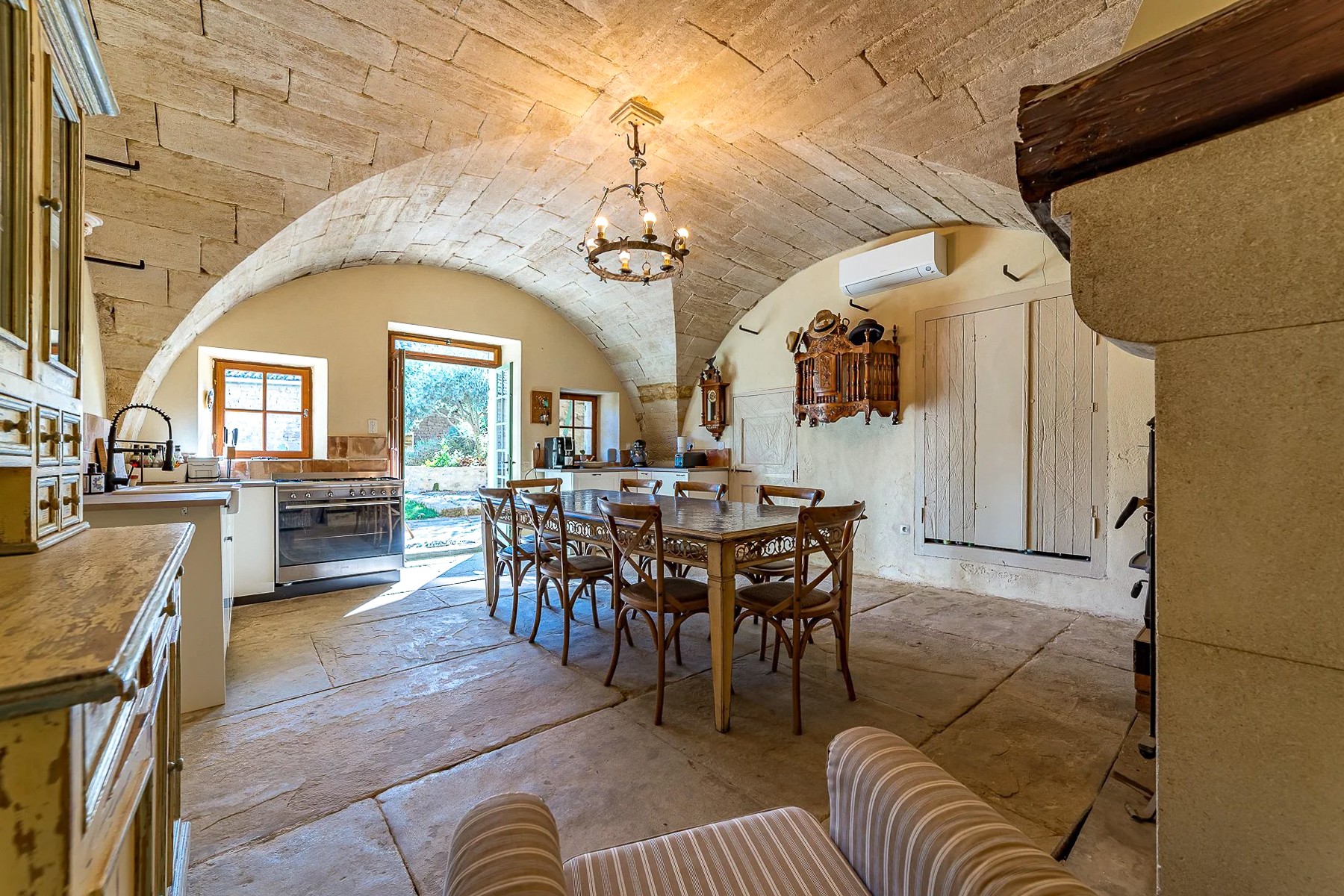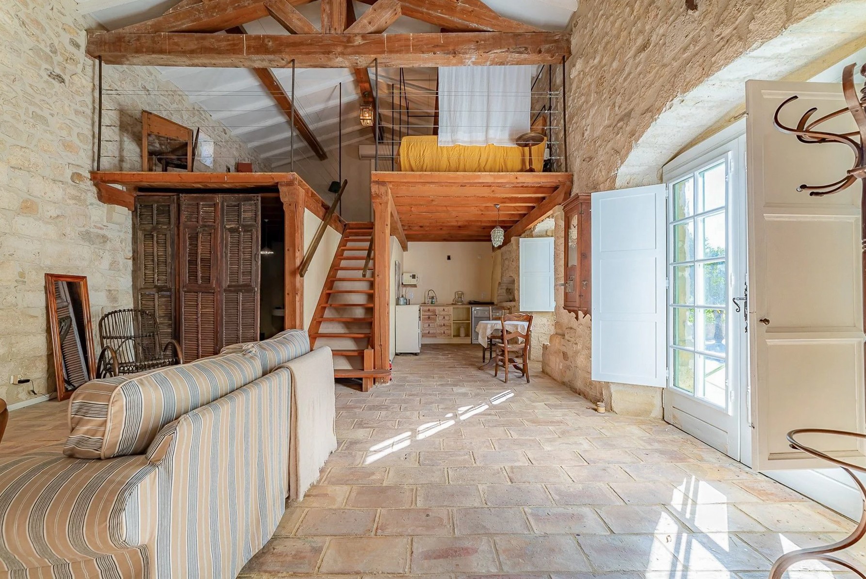 De eigendom (“Mas”) dateert uit de 18e eeuw en bestaat uit het hoofdgebouw van 320 m² en twee zelfstandige appartementen van 52 m² en 71 m². Het hoofdgebouw heeft ruime kamers met gewelfde plafonds, een eetkamer en keuken. Op de bovenverdieping bevinden zich twee slaapkamers met eigen badkamer, een grote slaapzaal en andere flexibele ruimtes die als kantoor of atelier kunnen worden gebruikt.